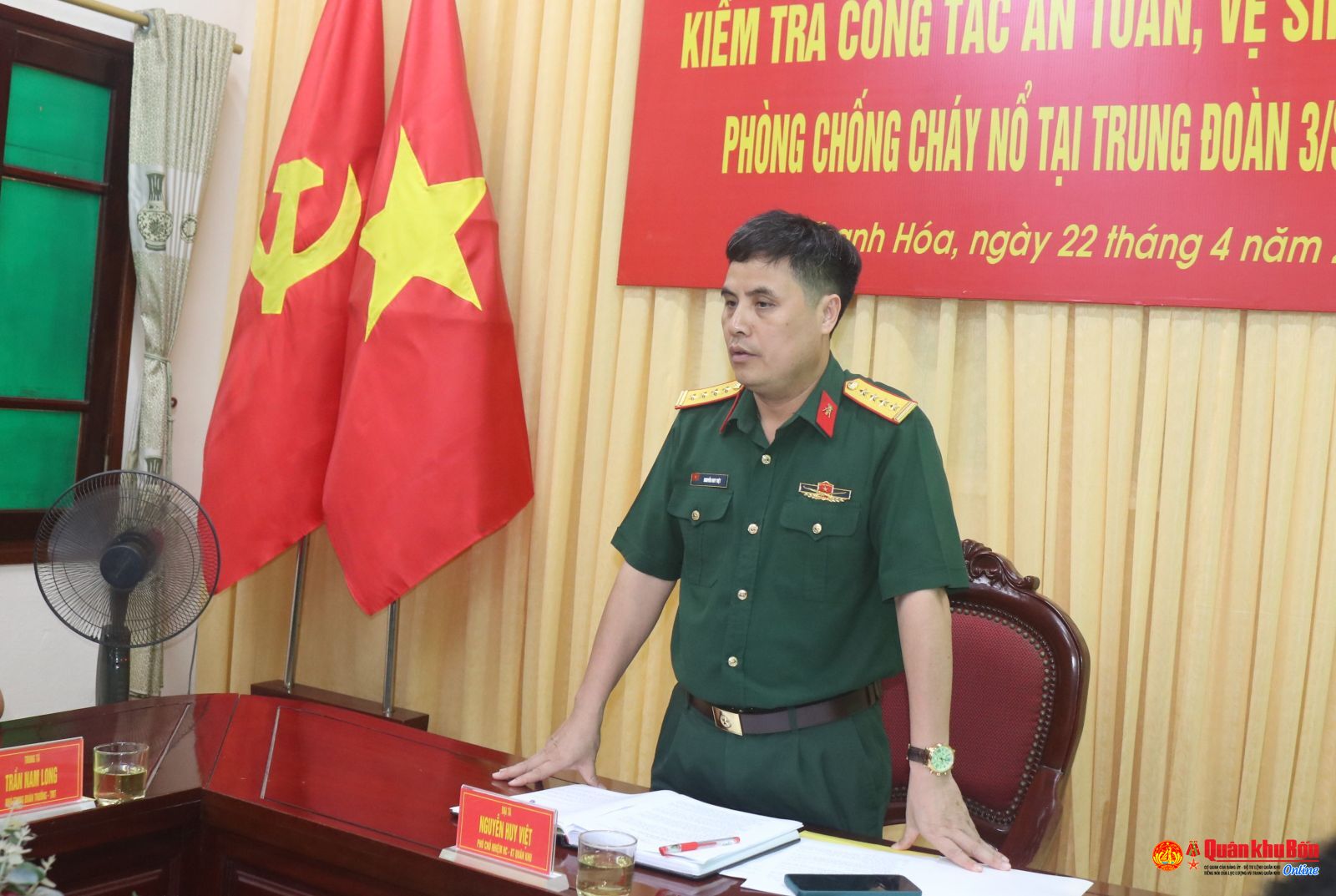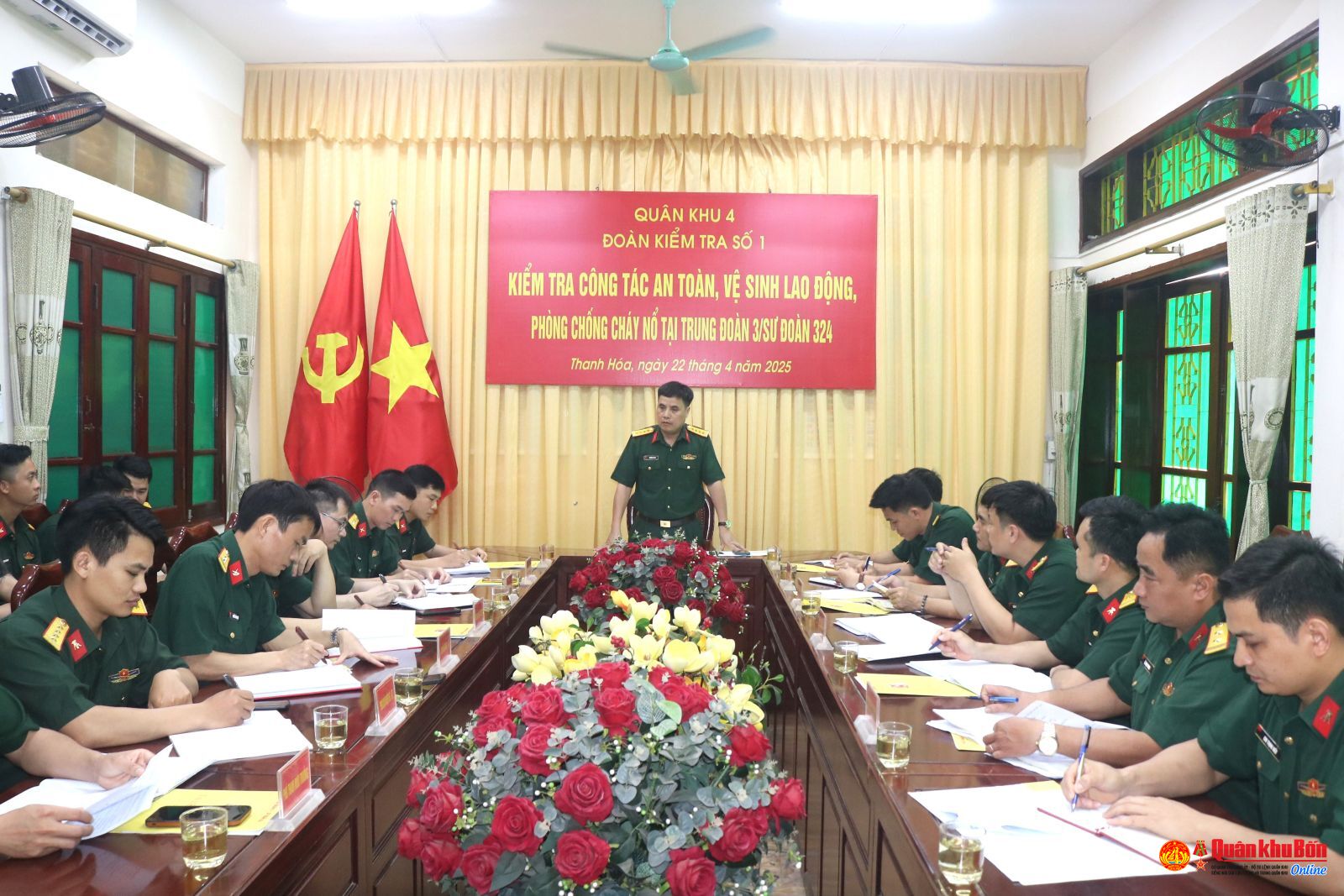 Chiều ngày 22/4/2025, Đại tá Nguyễn Huy Việt, Phó Chủ nhiệm Hậu cần – Kỹ thuật Quân khu 4 dẫn đầu đoàn công tác của Quân khu đã tiến hành kiểm tra công tác an toàn, vệ sinh lao động (ATVSLĐ), phòng, chống cháy nổ (PCCN) tại Trung đoàn 3, Sư đoàn 324, Quân khu 4.