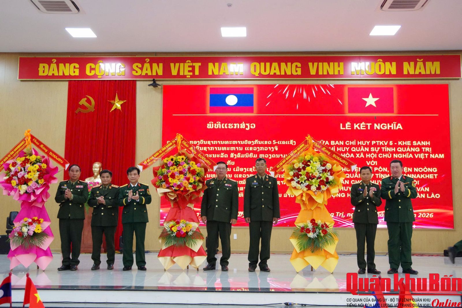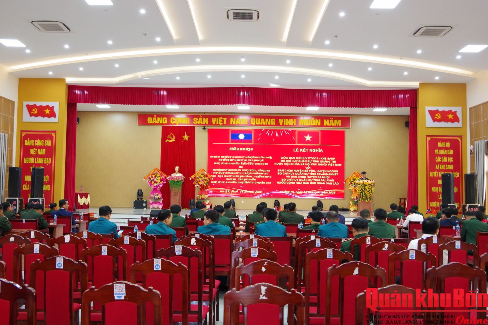 Ngày 14/1/2026, tại xã Khe Sanh, Ban Chỉ huy Phòng thủ khu vực 5 (PTKV5) - Khe Sanh, Bộ CHQS tỉnh Quảng Trị phối hợp với Ban Chỉ huy Quân sự (CHQS) các huyện: Sê Pôn, Noòng (Bộ CHQS tỉnh Savannakhet) và Ban CHQS huyện Sa Muội (Bộ CHQS tỉnh salavan, nước Cộng hòa Dân chủ nhân dân Lào tổ chức Lễ kết nghĩa và ký kết Quy chế phối hợp hoạt động.