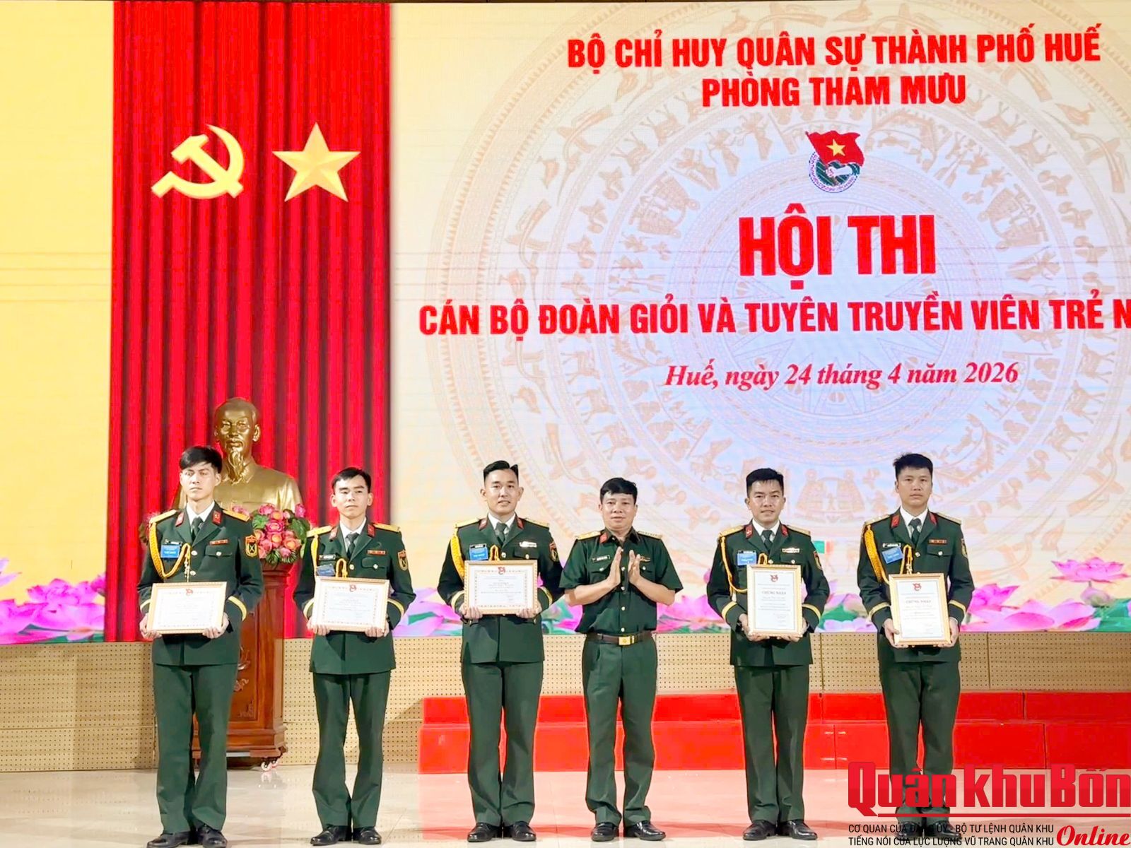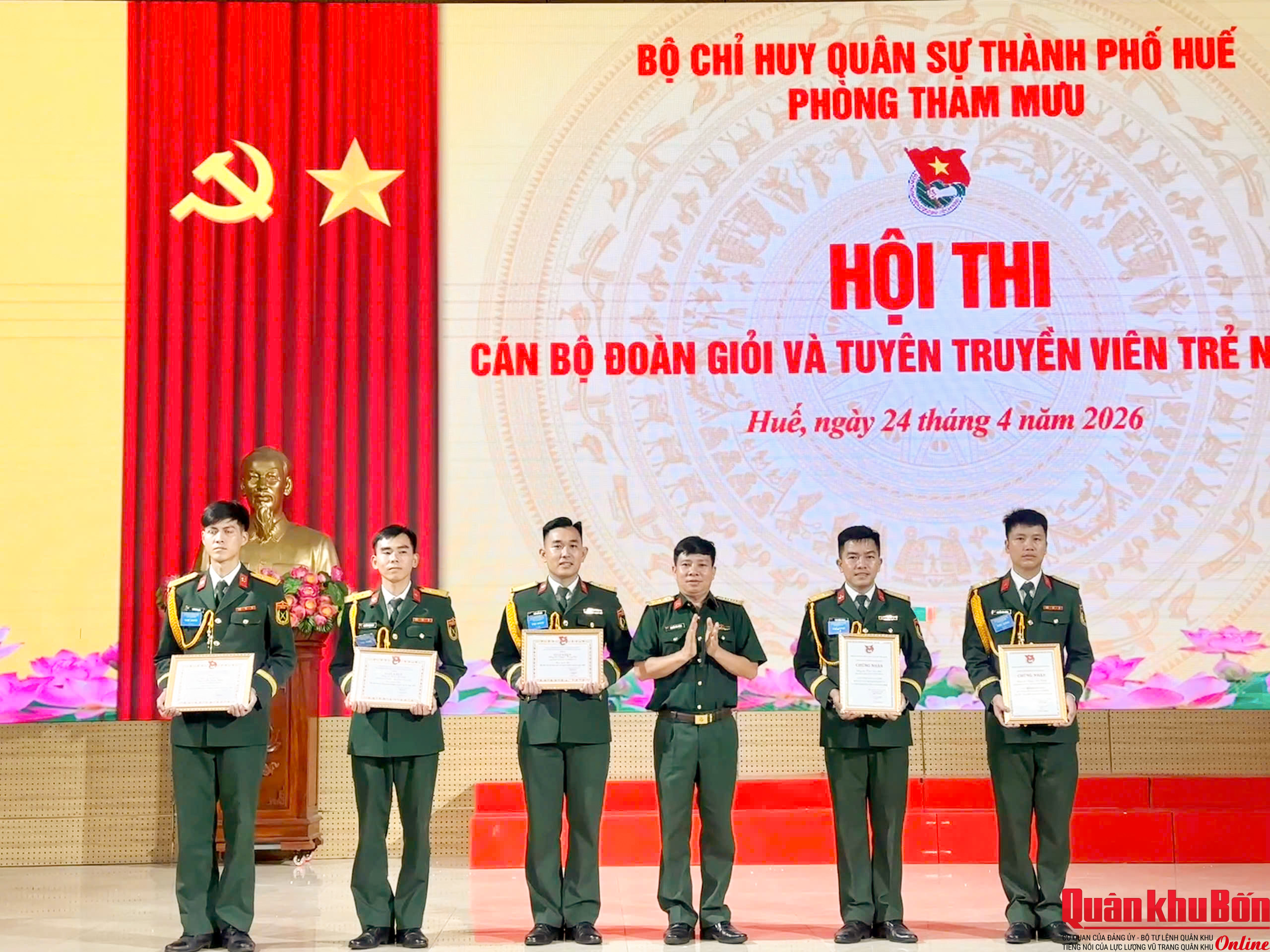 Nhằm đánh giá kỹ năng và tinh thần sáng tạo của cán bộ Đoàn cơ sở, ngày 24/4/2026, Phòng Tham mưu, Bộ Chỉ huy Quân sự (CHQS) thành phố Huế đã tổ chức Hội thi cán bộ Đoàn giỏi và tuyên truyền viên trẻ năm 2026.