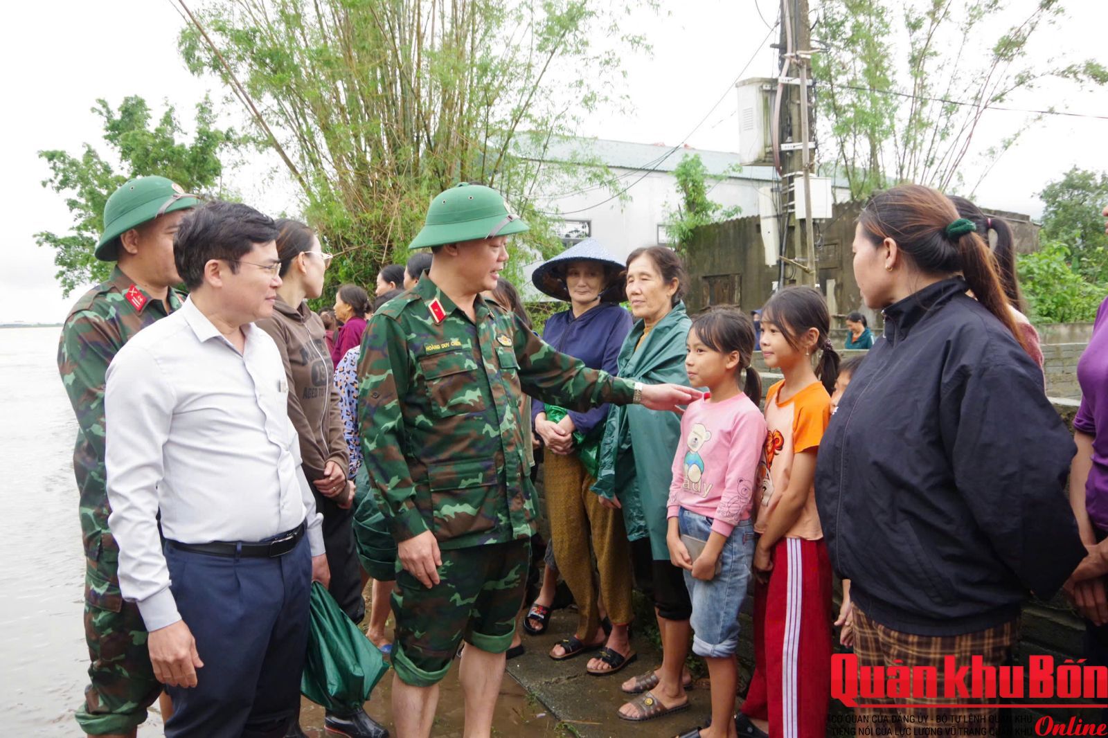 Trực tiếp kiểm tra tại các địa phương vùng ven biển thuộc phường Vũng Áng, tỉnh Hà Tĩnh, đồng chí Phó tư lệnh Quân khu 4 đánh giá cao công tác chủ động phòng chống, ứng phó của cấp ủy, chính quyền và lực lượng vũ trang các địa phương. Đặc biệt là việc triển khai các biện pháp “4 tại chỗ”, sẵn sàng huy động lực lượng, phương tiện xử lý các tình huống trong mưa lũ.