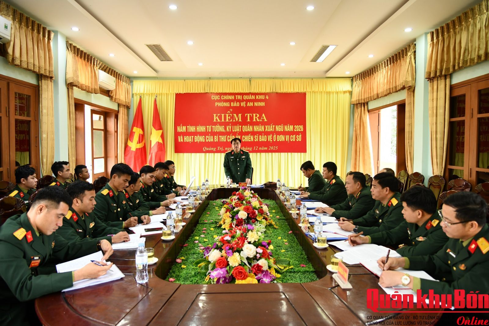 Sáng 02/12/2025, đoàn công tác Phòng Bảo vệ an ninh, Cục Chính trị Quân khu 4 do Thượng tá Phan Trọng Cường, Phó trưởng phòng làm trưởng đoàn đã tiến hành kiểm tra, nắm tình hình tư tưởng, kỷ luật quân nhân xuất ngũ năm 2026 và hoạt động của bí thư cấp ủy, chiến sĩ bảo vệ tại Sư đoàn 968.