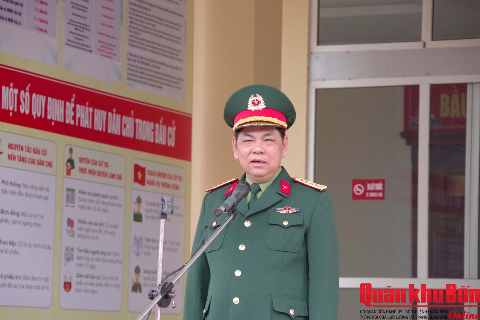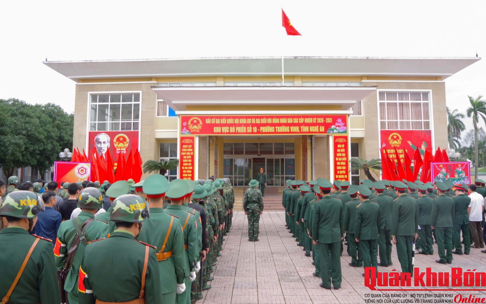 Chiều 9/3/2026, cơ quan Quân khu 4 tổ chức luyện tập phương án sẵn sàng chiến đấu bảo vệ bầu cử đại biểu Quốc hội khóa XVI và đại biểu Hội đồng nhân dân các cấp nhiệm kỳ 2026 - 2031. Đại tá Phạm Văn Dũng, Phó Tham mưu trưởng Quân khu chỉ huy buổi luyện tập.
