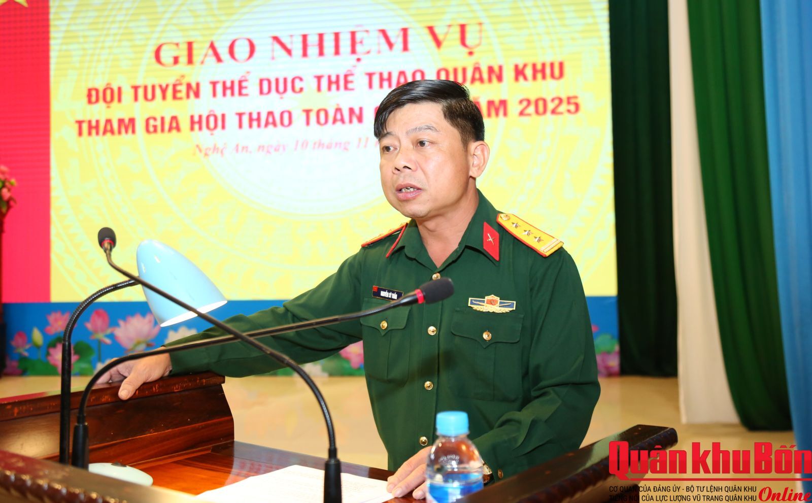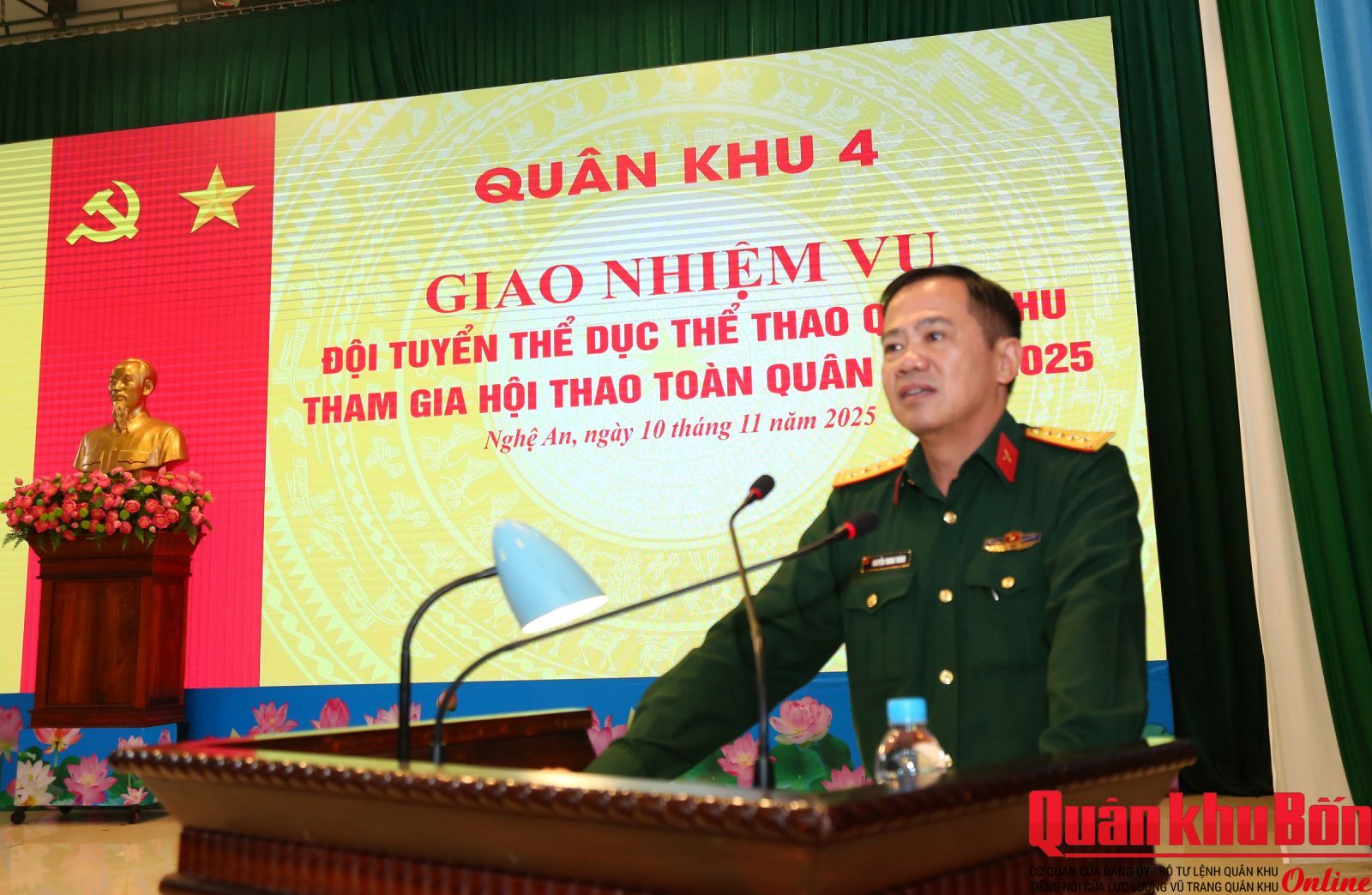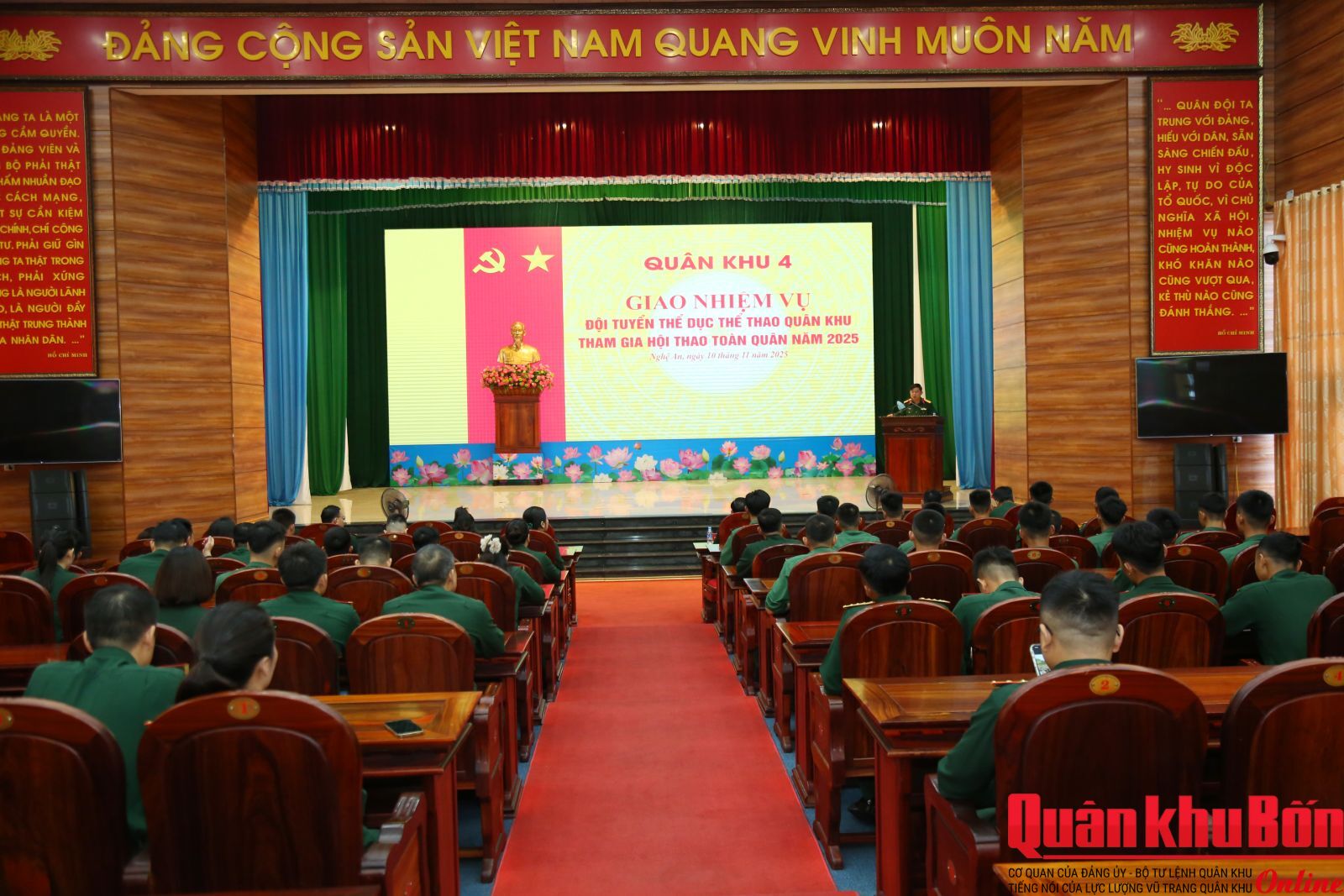 Sáng ngày 10/11/2025, Quân khu 4 tổ chức Hội nghị giao nhiệm vụ cho đội tuyển thể dục thể thao Quân khu tham gia Hội thao Thể dục thể thao toàn quân năm 2025. Đại tá Nguyễn Trung Thành, Phó Tham mưu trưởng Quân khu chủ trì Hội nghị.