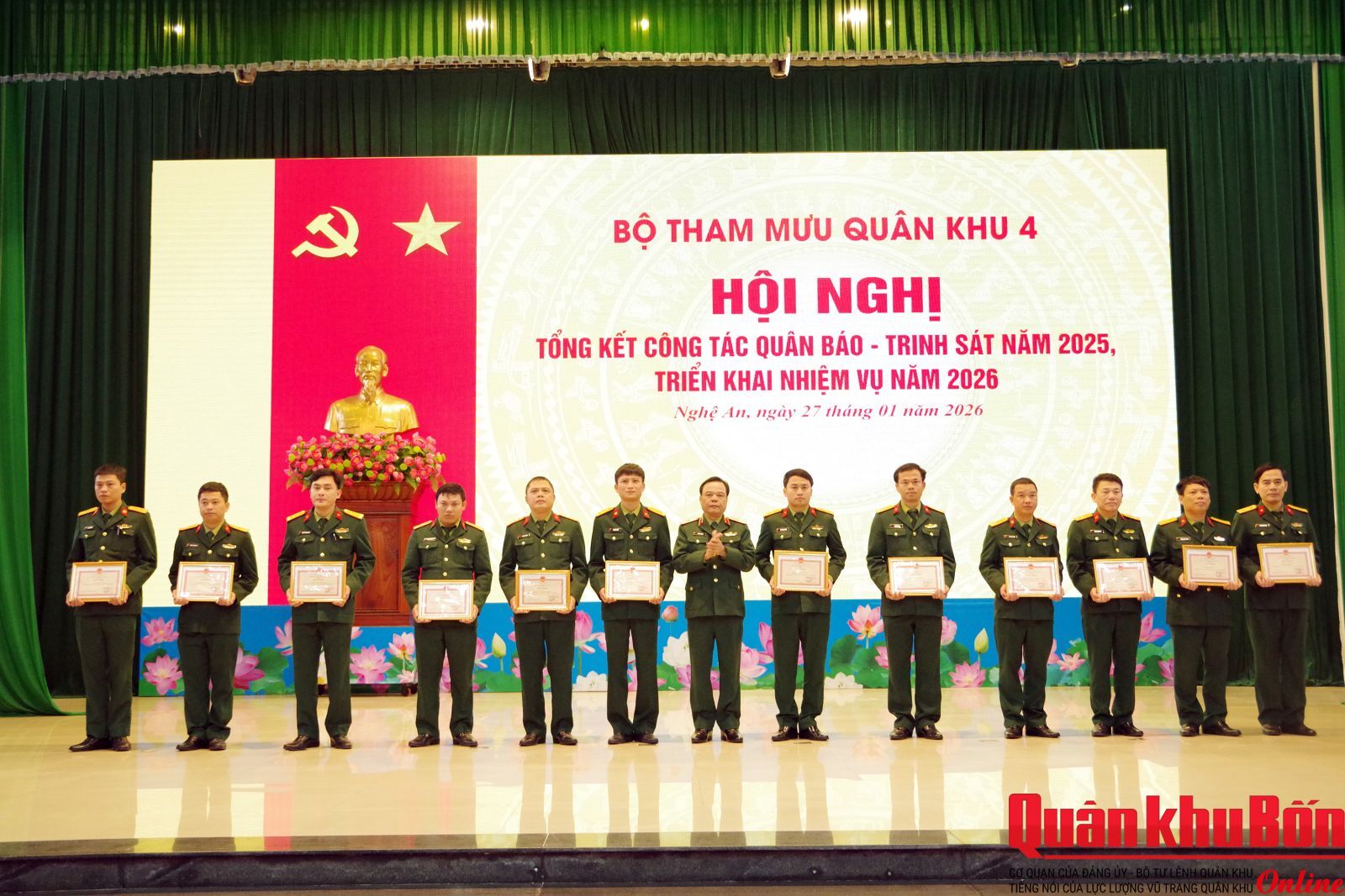 Tại Hội nghị, Thủ trưởng Bộ Tư lệnh đã trao giấy khen tặng 07 tập thể và 11 cá nhân có thành tích xuất sắc trong thực hiện nhiệm vụ Quân báo, Trinh sát năm 2025.