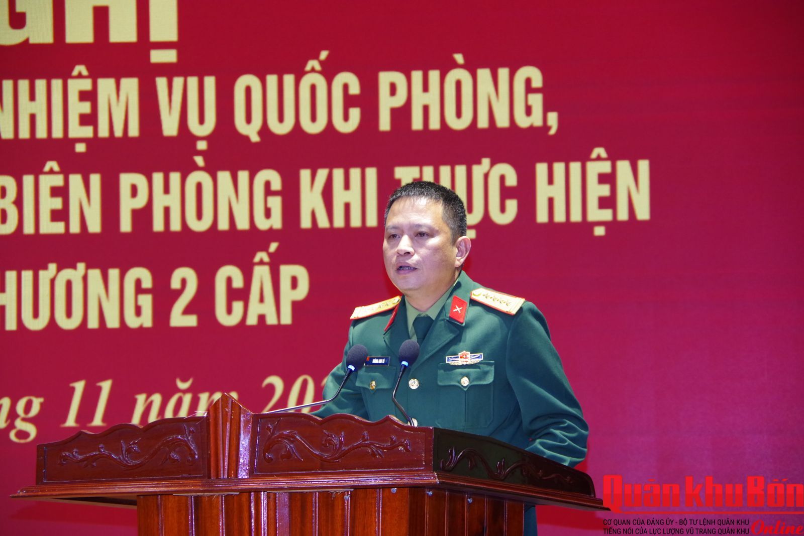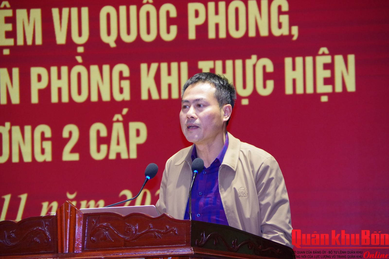 Kết luận hội nghị, Đại tá Hoàng Anh Tú nhấn mạnh: Thời gian qua Ban Chỉ huy Bộ đội Biên phòng, Ban Chỉ huy Phòng thủ khu vực, Ban CHQS cấp xã đã phối hợp với các ban, sở, ngành của địa phương tham mưu Bộ CHQS tỉnh, cấp ủy, chính quyền các địa phương lãnh đạo, triển khai sau sắp xếp, tổ chức lại cơ quan quân sự địa phương đồng bộ, thống nhất, hoàn thành mọi nhiệm vụ được giao; cơ quan, đơn vị bảo đảm an toàn. Thực hiện hiệu quả công tác cải cách hành chính và chuyển đổi số; khai thác ứng dụng phần mềm dùng chung phục vụ chuyển đổi số và triển khai thực hiện phong trào “Bình dân học vụ số” trong Bộ Quốc phòng, bảo đảm an toàn thông tin, an toàn máy tính quân sự, vật tư bảo mật và tài liệu lưu trữ. Trên cơ sở khó khăn trong thực hiện chính quyền địa phương 2 cấp Bộ CHQS tỉnh sẽ tiếp thu, tiếp tục nghiên , tham mưu cho cấp trên để triển khai thực hiện hiệu quả nhiệm vụ quân sự, quốc phòng và biên phòng ở địa phương.