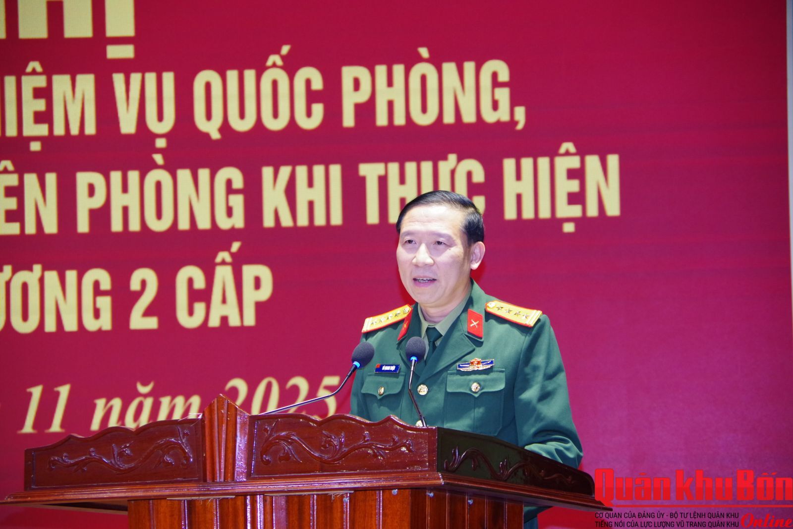 Phó Chỉ huy trưởng, Tham mưu trưởng yêu cầu: Các đơn vị tiếp tục quán triệt, triển khai thực hiện nghiêm Nghị quyết, Chỉ thị, kết luận của Quân ủy Trung ương, Bộ Quốc phòng, Quân khu về thực hiện nhiệm vụ quân sự, quốc phòng năm 2025 và Đề án tổ chức quân sự địa phương “tinh, gọn, mạnh”; củng cố, kiện toàn Ban CHQS cấp xã. Theo dõi kiểm tra, làm tốt công tác tuyển quân năm 2026.