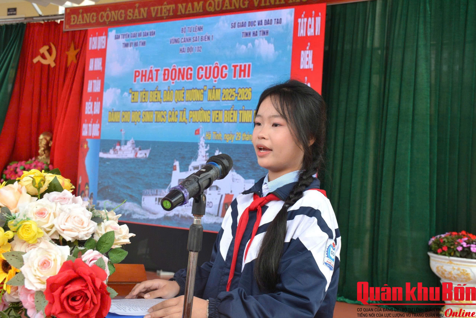 Phát biểu tại lễ phát động, đồng chí Bùi Quang Hoàn, Phó trưởng Ban Tuyên giáo và Dân vận Tỉnh ủy Hà Tĩnh khẳng định: Cuộc thi “Em yêu biển, đảo quê hương” là hoạt động thiết thực, góp phần cụ thể hóa Đề án số 3934 của Bộ Quốc phòng, đưa công tác tuyên truyền biển, đảo và pháp luật về biển, đảo đi vào chiều sâu, phù hợp với đối tượng học sinh; qua đó hướng tới xây dựng thế hệ công dân trẻ có tri thức, bản lĩnh, niềm tin và trách nhiệm đối với Tổ quốc.