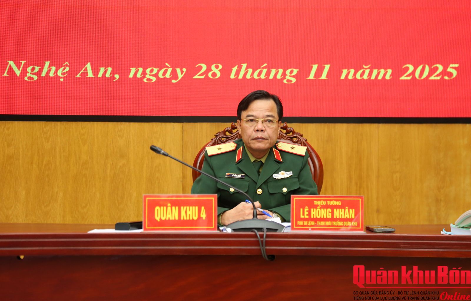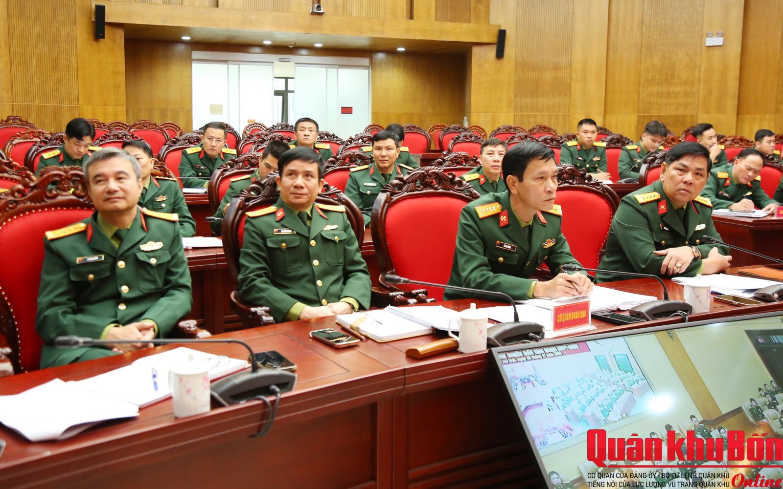 Hội nghị tiến hành trực tiếp và trực tuyến với 52 điểm cầu trong toàn quân. Thiếu tướng Lê Hồng Nhân, Phó Tư lệnh TMT Quân khu chủ trì tại điểm cầu Sở chỉ huy Quân khu.