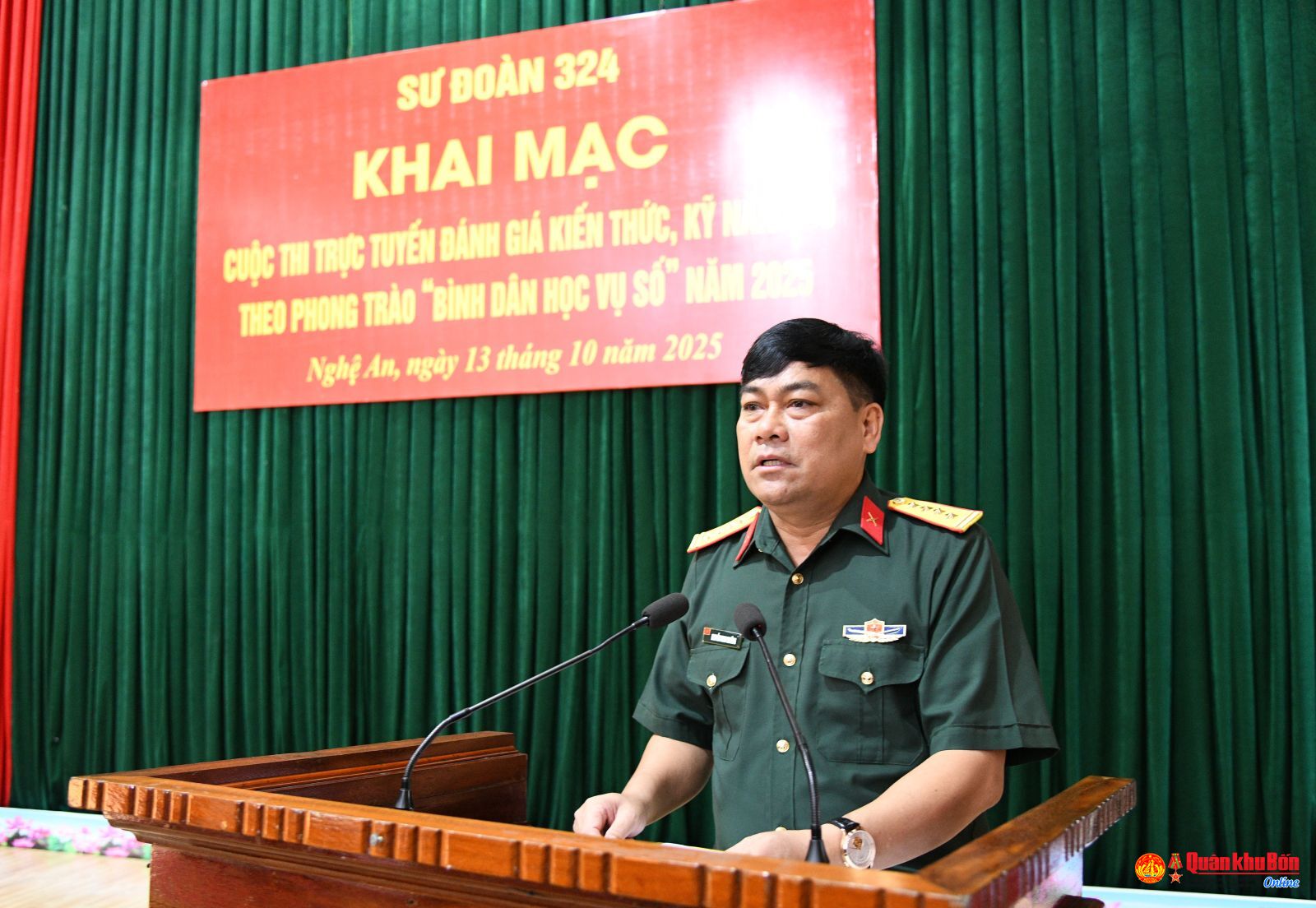 Sư đoàn 324 vừa tổ chức khai mạc cuộc thi trực tuyến đánh giá kiến thức, kỹ năng số theo phong trào “Bình dân học vụ số” năm 2025. Dự và chỉ đạo có Đại tá Nguyễn Thao Trường, Sư đoàn trưởng; Đại tá Nguyễn Huy Long, Chính ủy Sư đoàn.
