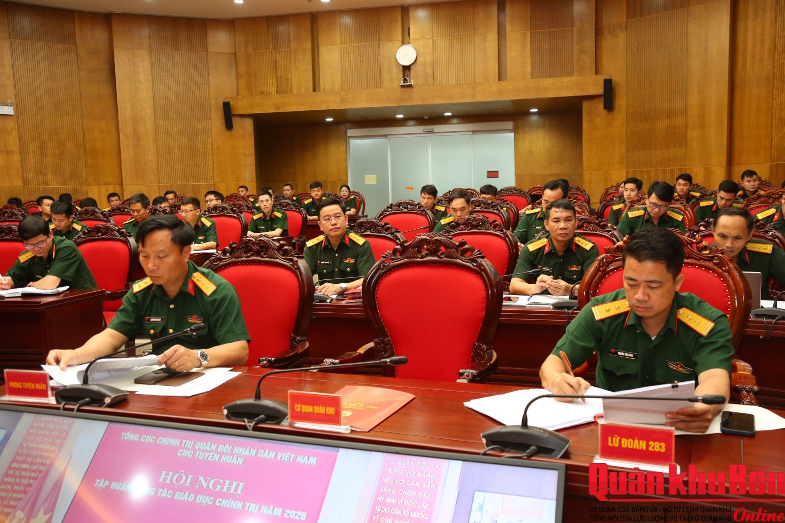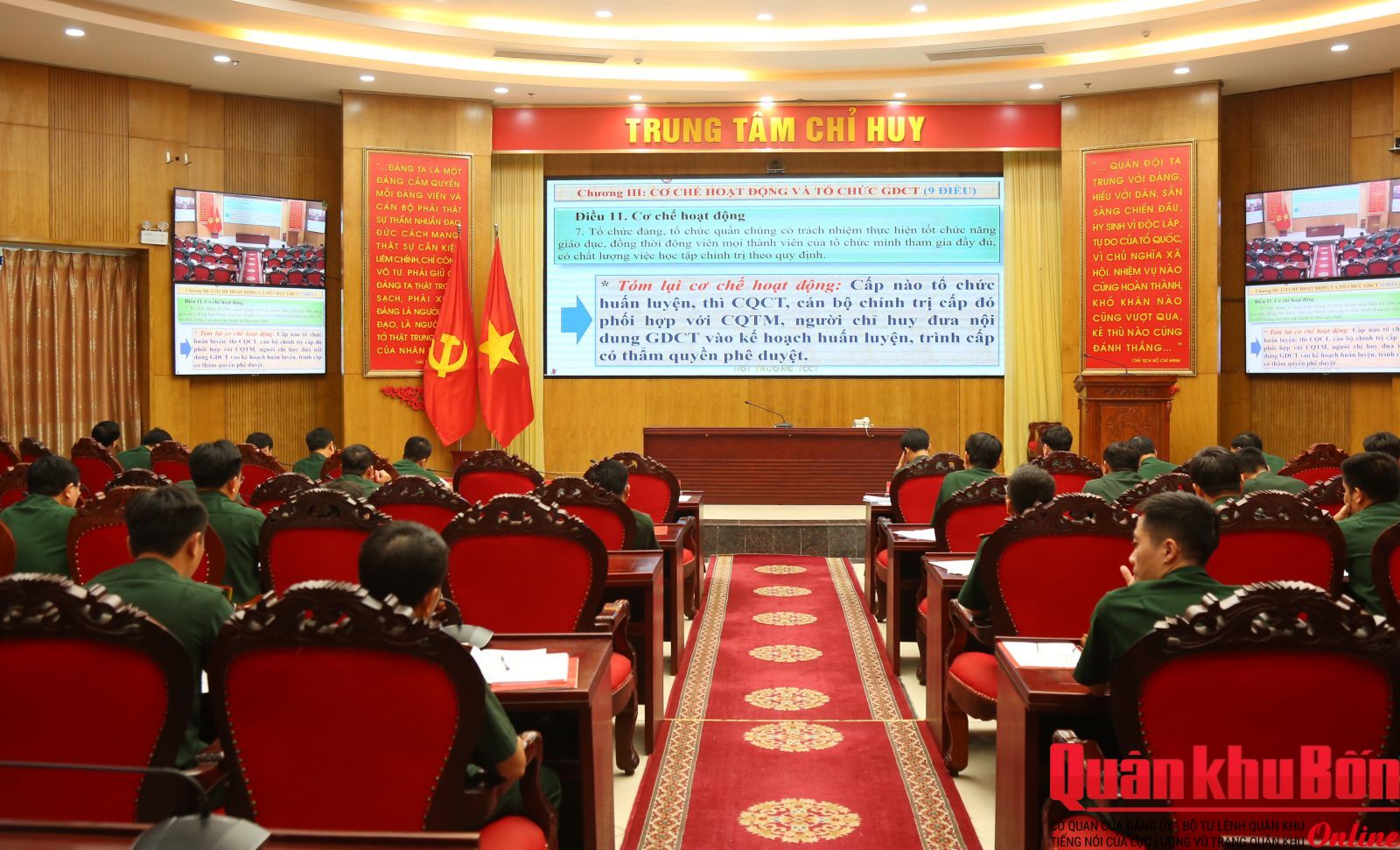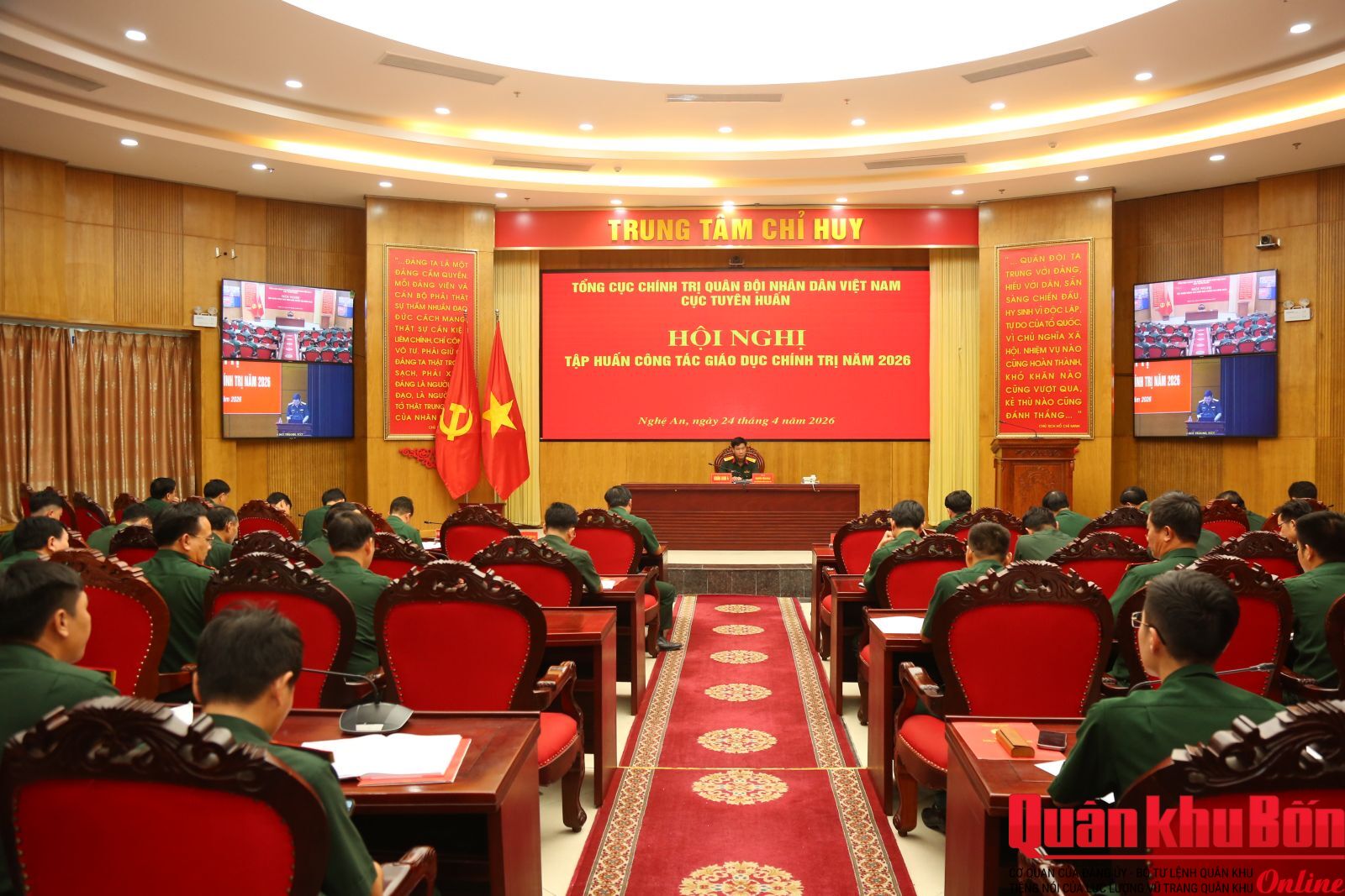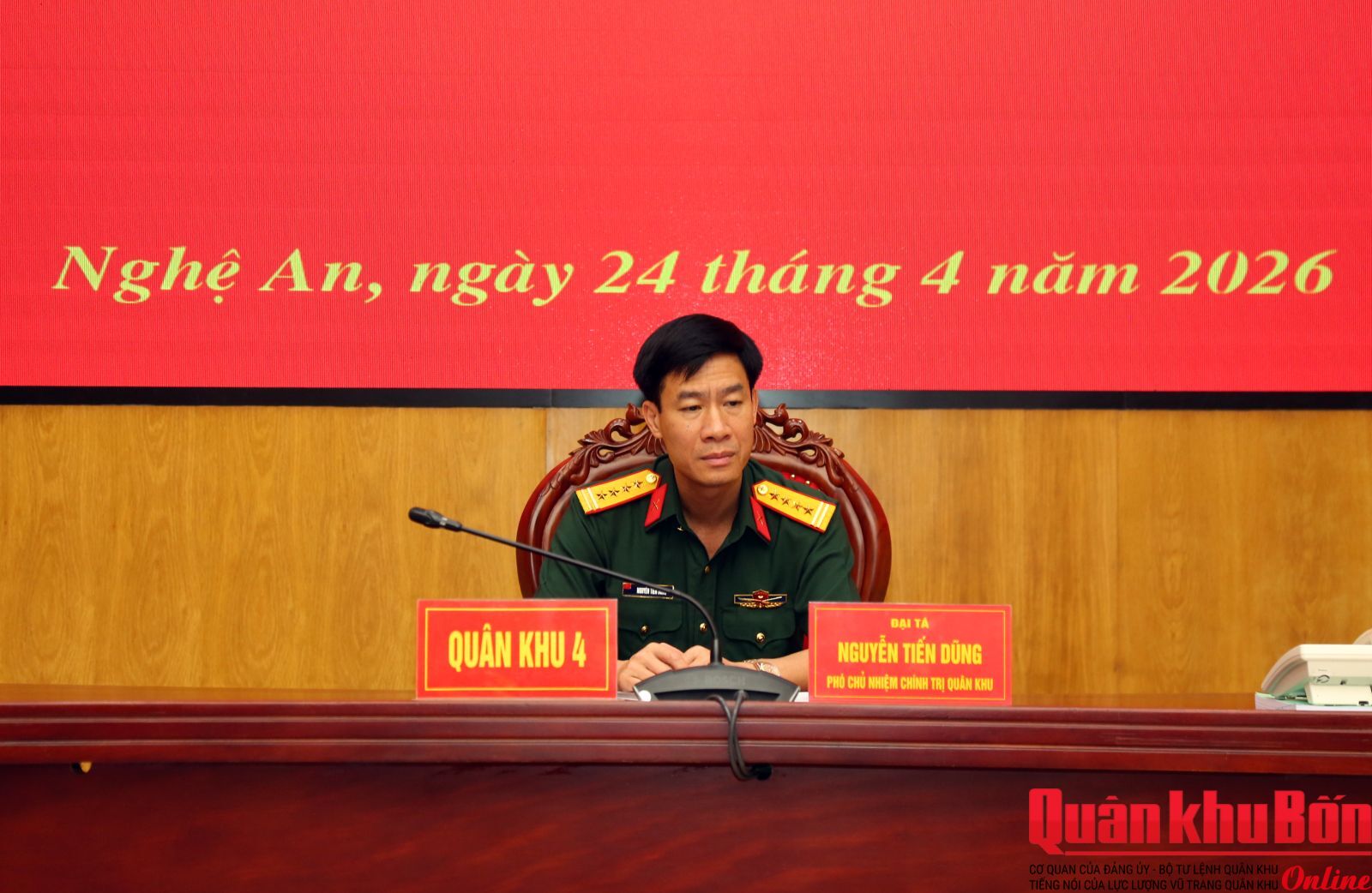 Tại điểm cầu Sở chỉ huy Quân khu 4, Đại tá Nguyễn Tiến Dũng, Phó Chủ nhiệm Chính trị Quân khu chủ trì hội nghị. Tham dự có thủ trưởng Phòng Tuyên huấn, đại biểu các cơ quan chức năng Quân khu cùng đội ngũ cán bộ, nhân viên làm công tác công nghệ thông tin và giáo dục chính trị ở các đơn vị trên địa bàn tỉnh Nghệ An.