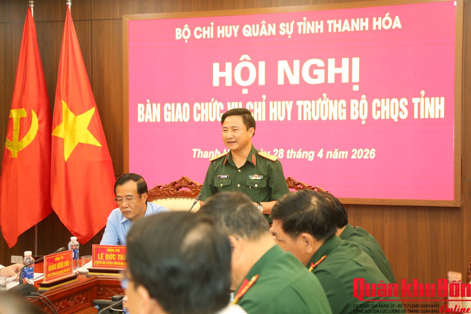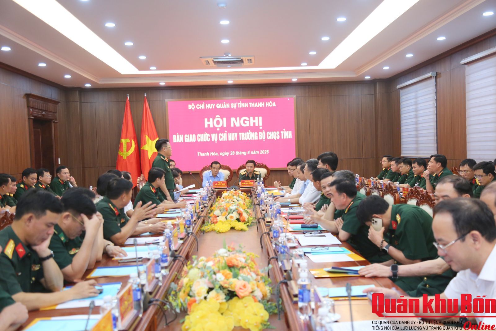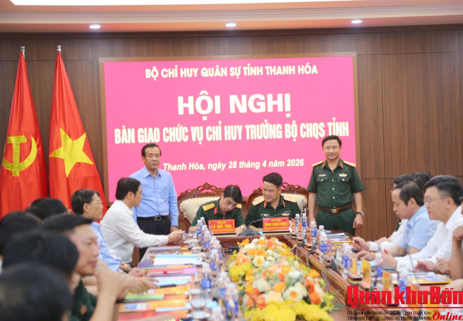 Chiều 28/4/2026, trong không khí trang trọng, Bộ Chỉ huy Quân sự (CHQS) tỉnh Thanh Hóa tổ chức Hội nghị bàn giao chức vụ Chỉ huy trưởng Bộ CHQS tỉnh.