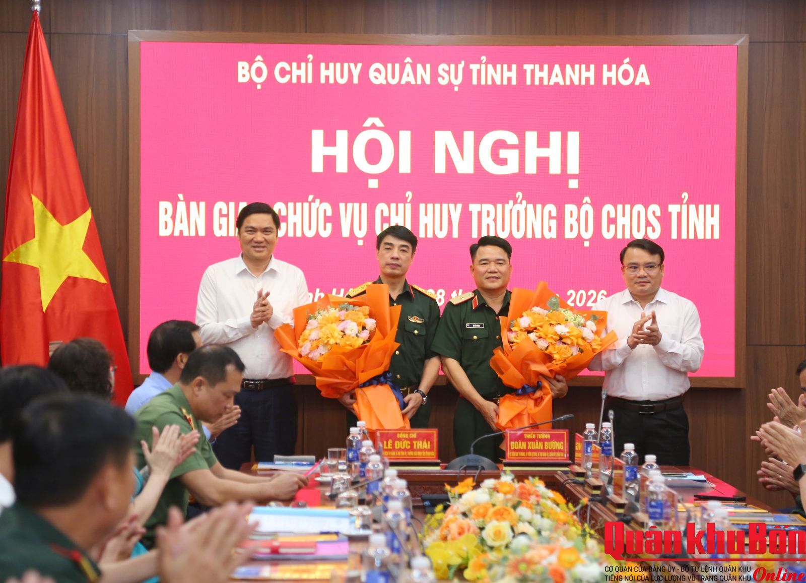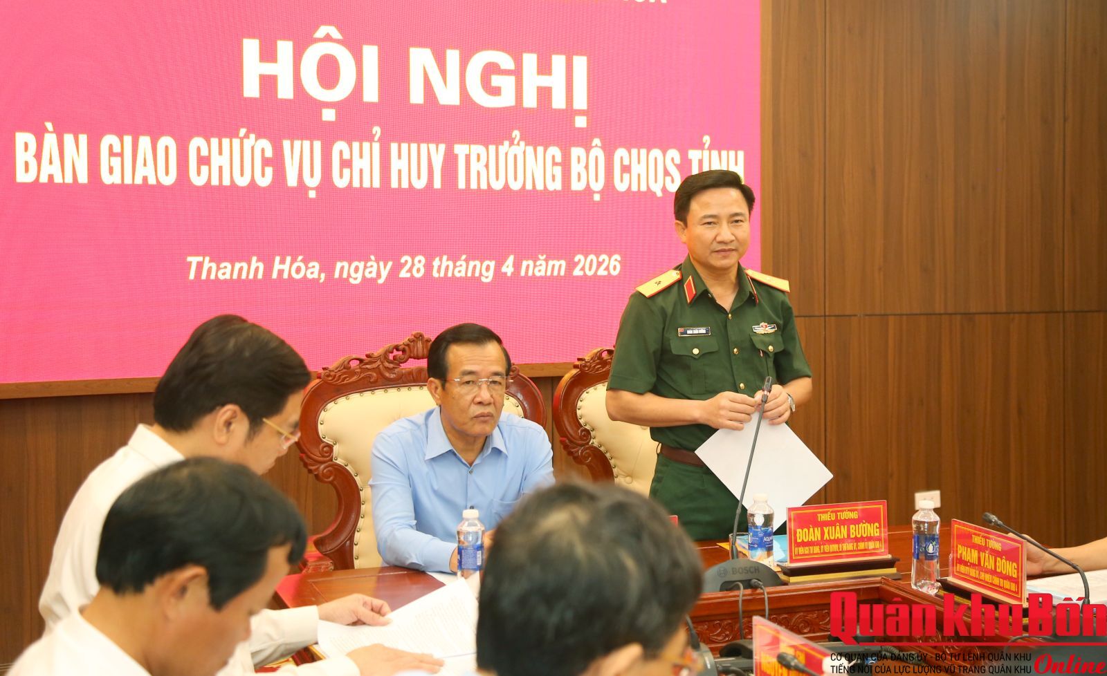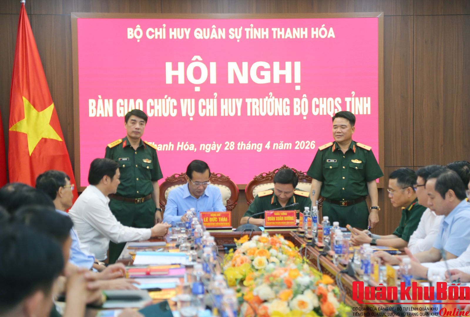Chiều 28/4/2026, trong không khí trang trọng, Bộ Chỉ huy Quân sự (CHQS) tỉnh Thanh Hóa tổ chức Hội nghị bàn giao chức vụ Chỉ huy trưởng Bộ CHQS tỉnh.