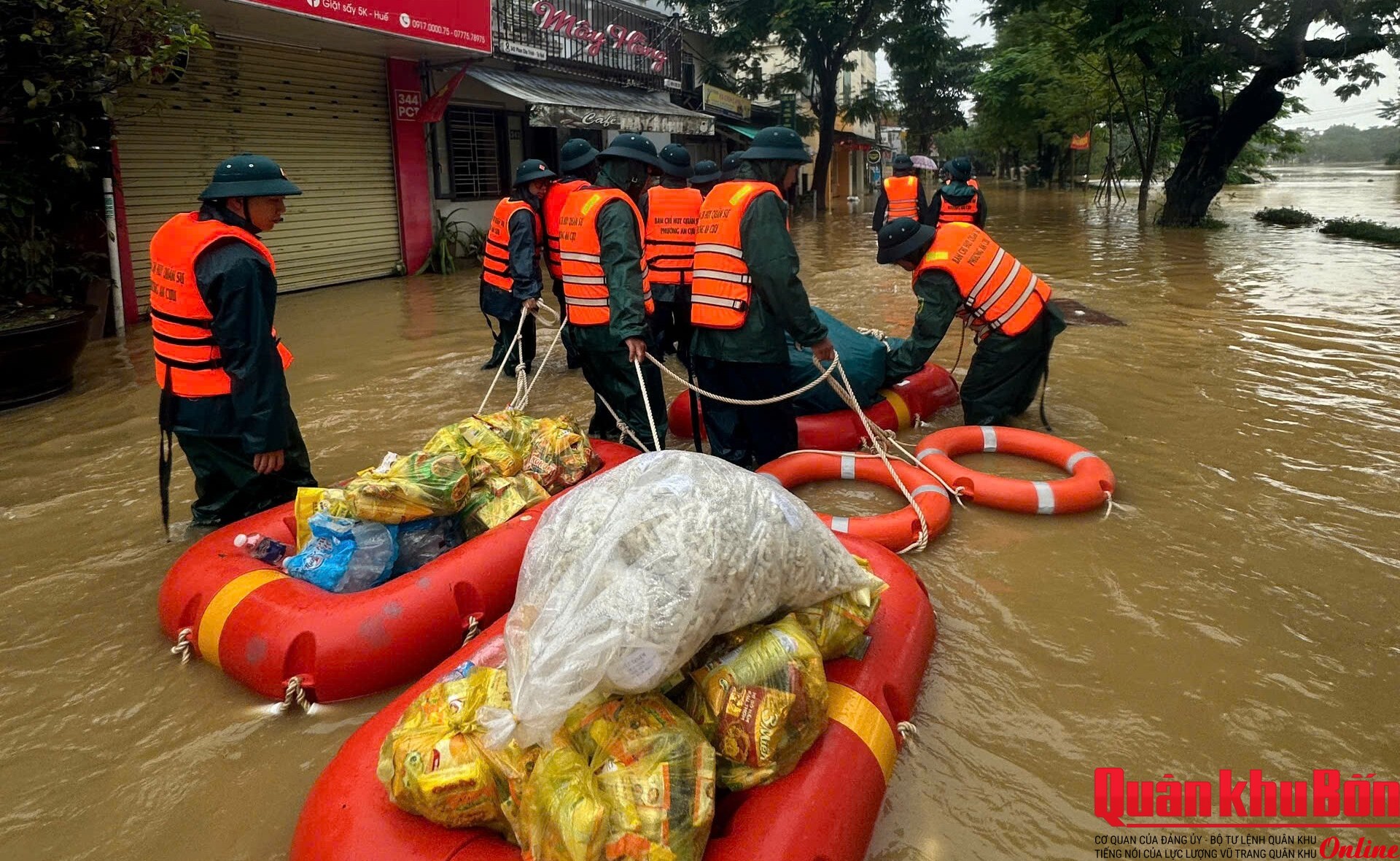 Ngày 29/10/2025, trên địa bàn thành phố Huế, nước lũ đã bắt đầu rút, cán bộ, chiến sĩ lực lượng vũ trang thành phố ra quân giúp đỡ, hỗ trợ các địa phương khắc phục hậu quả sau mưa lũ và cung cấp lương thực, thực phẩm cho bà con với phương châm "nước rút đến đâu, dọn dẹp đến đó”, đồng thời không để bà con phải chịu đói, chịu rét sau khi mưa lũ đi qua.