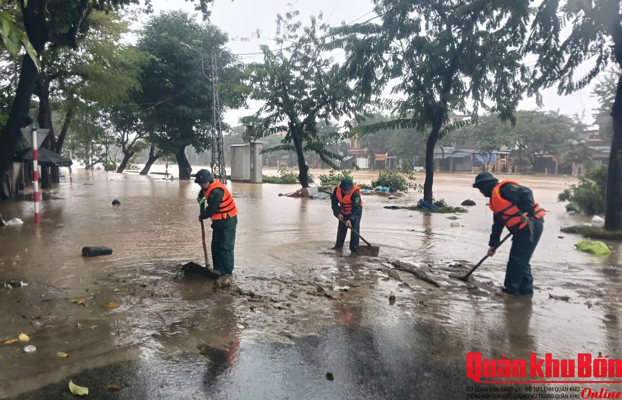 Trên các tuyến đường Lê Lợi, Hùng Vương thuộc phường Thuận Hóa sau khi nước rút đã để lại một lượng bùn đất và rác thải rất lớn, ảnh hưởng đến mỹ quan thành phố cũng như việc đi lại của người dân. Mặc dù, điều kiện thời tiết không thuận lợi song ngay sau khi nước rút Bộ CHQS thành phố Huế đã huy động hơn 200 cán bộ, chiến sĩ Trung đoàn 6 cùng lực lượng dân quân nhanh chóng có mặt xử lý lượng bùn đất và dọn dẹp rác thải trên các tuyến đường này.
