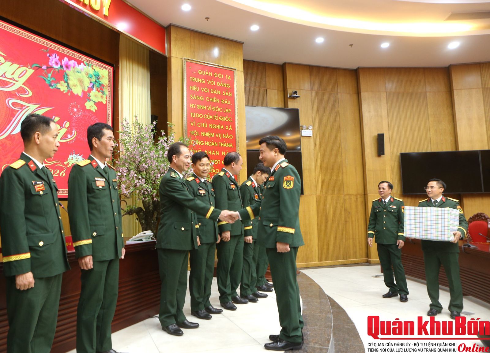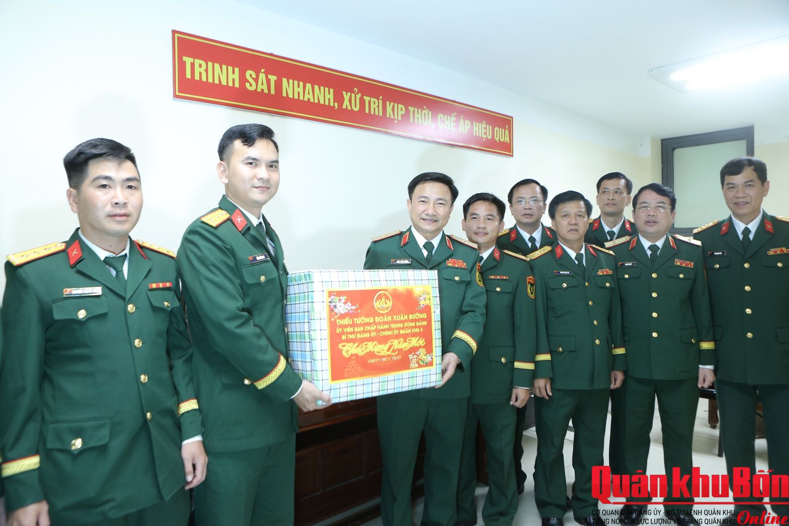 Tối 16/2/2026 (29 Tết Bính Ngọ), đoàn công tác của Bộ Tư lệnh Quân khu 4 do Thiếu tướng Đoàn Xuân Bường, Ủy viên Ban Chấp hành Trung ương Đảng, Bí thư Đảng ủy, Chính ủy Quân khu làm trưởng đoàn đã đến kiểm tra, động viên và chúc mừng năm mới các lực lượng trực sẵn sàng chiến đấu tại cơ quan Bộ Tư lệnh Quân khu.