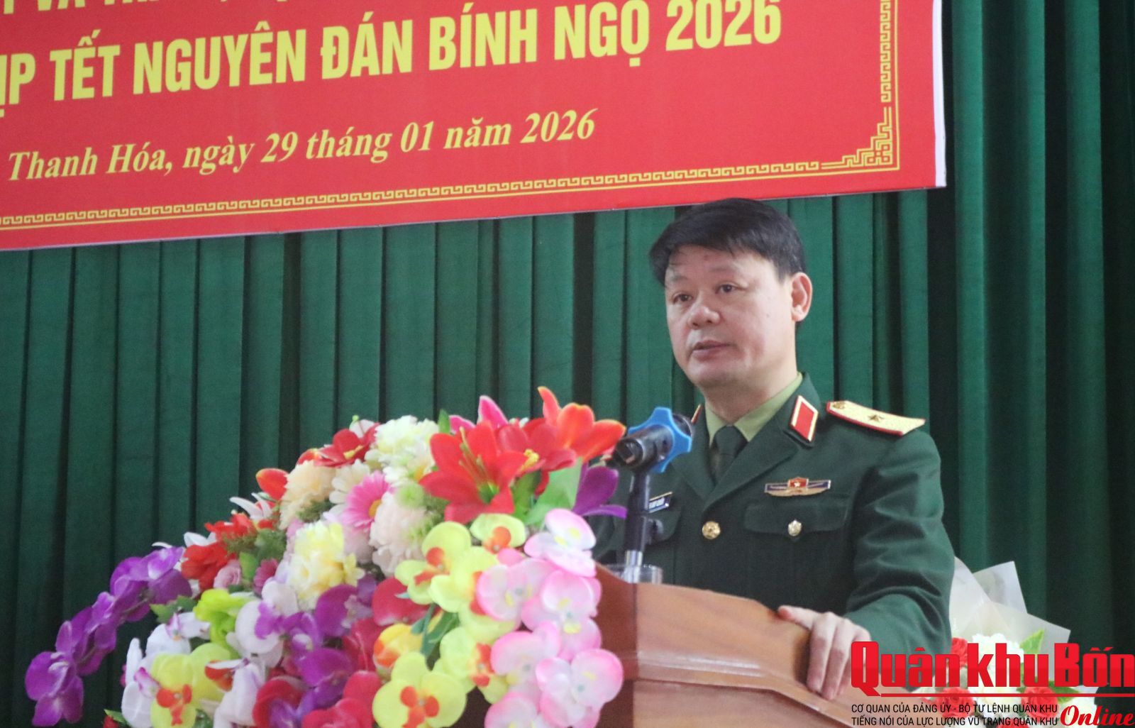 Phát biểu chúc Tết, Thiếu tướng Hoàng Duy Chiến, Phó Tư lệnh Quân khu 4 đánh giá cao kết quả mà các đơn vị đã đạt được trong năm 2025. Trong đó, Đoàn Kinh tế - Quốc phòng 5 đã có nhiều chủ trương, giải pháp phối hợp với cấp ủy, chính quyền địa phương thực hiện có hiệu quả nhiệm vụ xây dựng kinh tế gắn với quốc phòng, an ninh trên địa bàn.