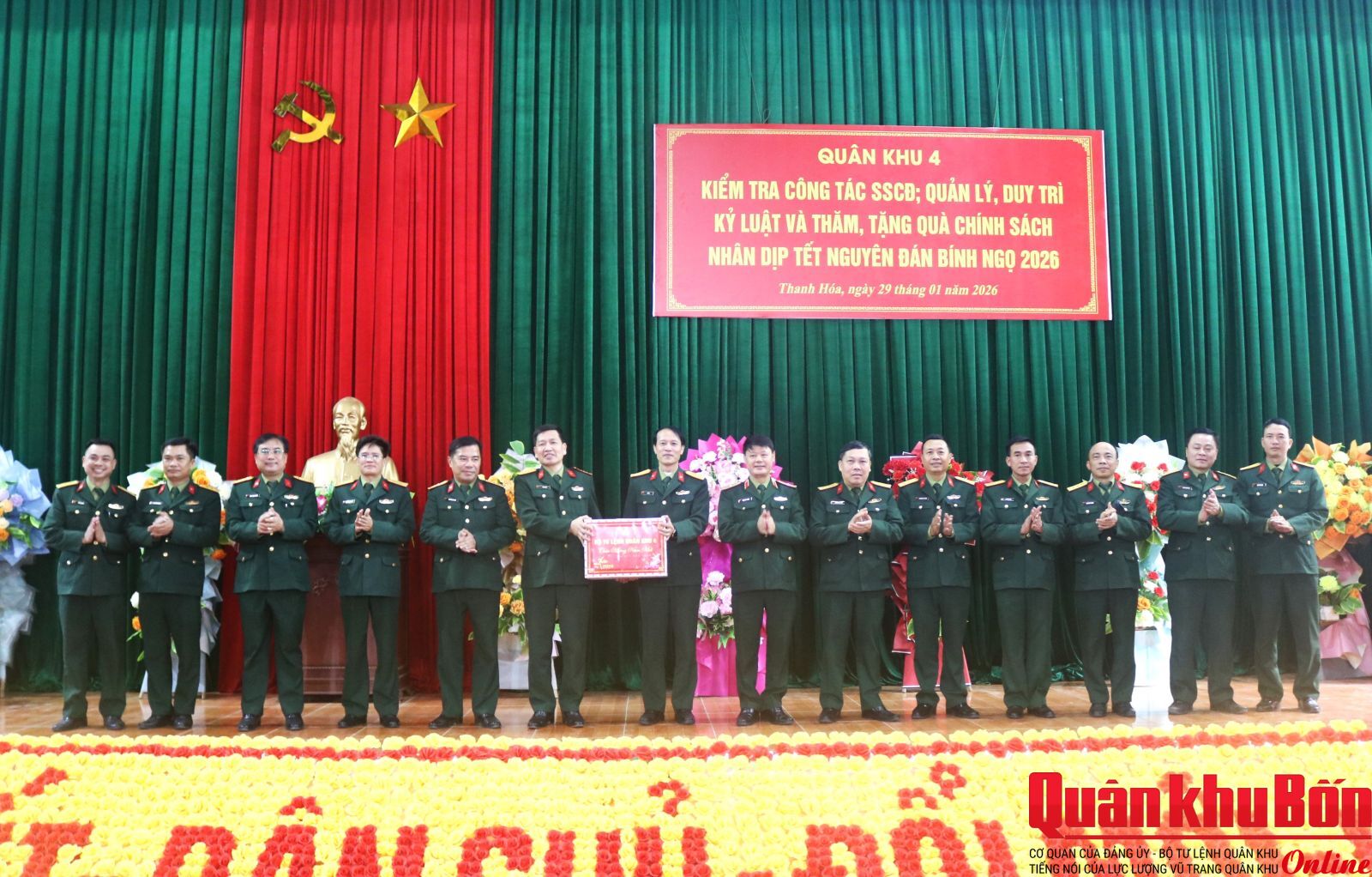 Tiếp tục chuyến thăm, kiểm tra sẵn sàng chiến đấu và chúc Tết Nguyên đán Bính Ngọ 2026 trên địa bàn tỉnh Thanh Hóa, ngày 29/1/2026, Đoàn công tác Bộ Tư lệnh Quân khu 4 do Thiếu tướng Hoàng Duy Chiến, Phó Tư lệnh Quân khu làm trưởng đoàn, đã đến kiểm tra công tác sẵn sàng chiến đấu (SSCĐ) và chúc Tết cán bộ, chiến sĩ tại Đoàn Kinh tế - Quốc phòng 5; các đồn Biên phòng trong Khu kinh tế, quốc phòng Mường Lát gồm: Tén Tằn, Quang Chiểu, Tam Chung, Pù Nhi và Trung Lý. Đại tá Nguyễn Kỳ Hồng, Phó Chủ nhiệm Chính trị Quân khu và Đại tá Trần Hữu Tùng, Phó Chỉ huy trưởng Bộ Chỉ huy Quân sự (CHQS) tỉnh Thanh Hóa tham gia đoàn công tác.