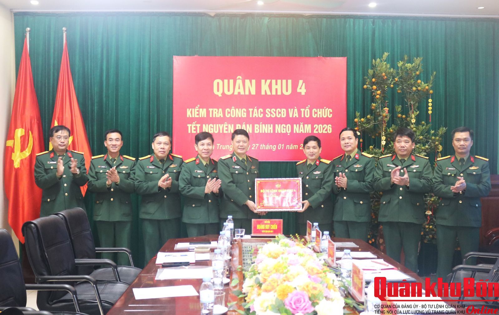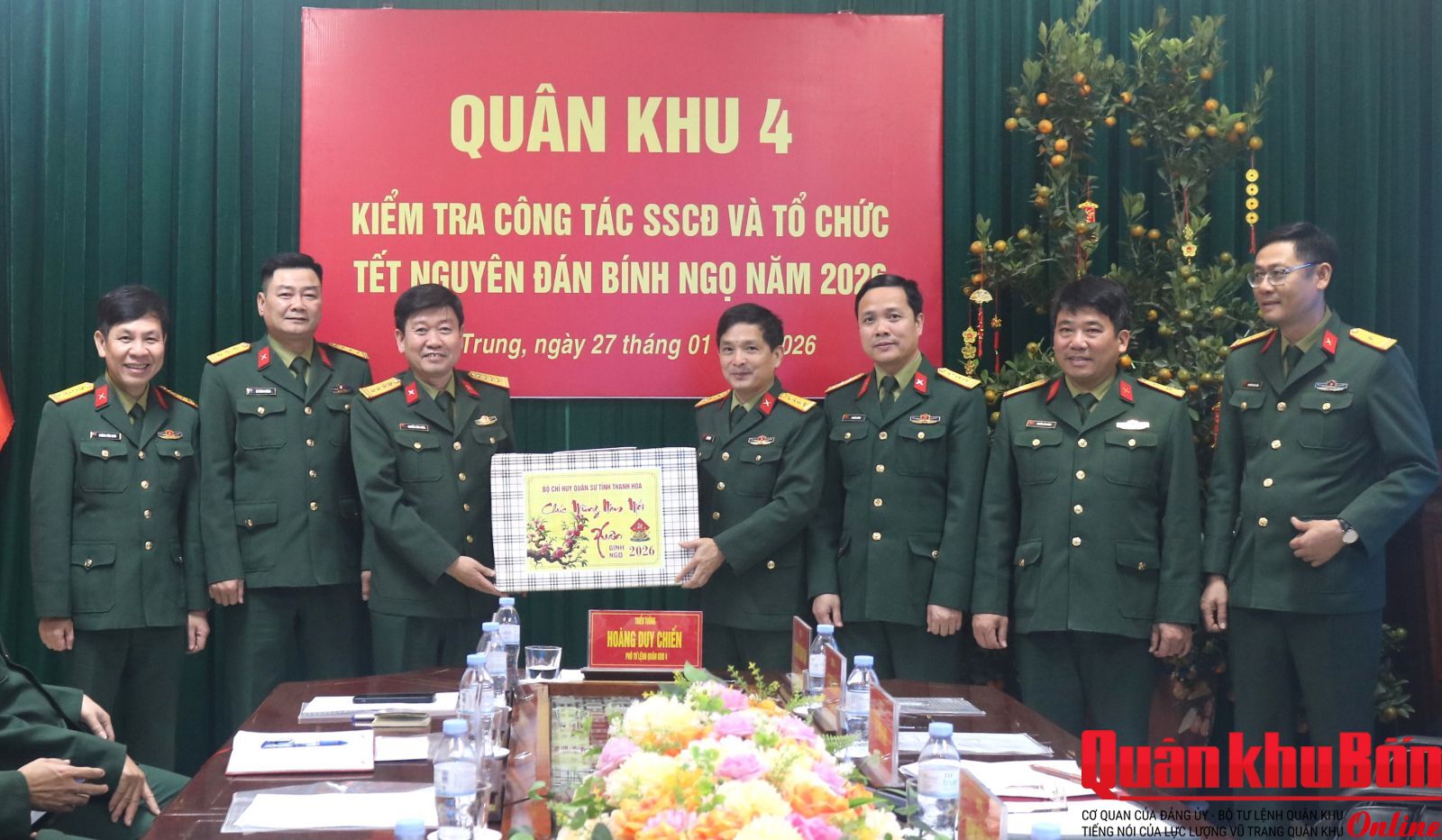 Tiếp tục chuyến thăm, kiểm tra sẵn sàng chiến đấu và chúc Tết Nguyên đán Bính Ngọ 2026 trên địa bàn tỉnh Thanh Hóa, ngày 27/1/2026, Đoàn kiểm tra Quân khu 4 do Thiếu tướng Hoàng Duy Chiến, Phó Tư lệnh Quân khu làm trưởng đoàn đã tiến hành kiểm tra công tác sẵn sàng chiến đấu (SSCĐ), chúc Tết cán bộ chiến sĩ Bộ Chỉ huy Quân sự (CHQS) tỉnh Thanh Hóa; Trung đoàn 3, Sư đoàn 324; thăm, chúc Tết Công an tỉnh, Hội Cựu Chiến binh tỉnh, Báo và Phát thanh, truyền hình tỉnh và Trung tâm Nuôi dưỡng, điều dưỡng người có công Thanh Hóa. Đại tá Nguyễn Kỳ Hồng, Phó Chủ nhiệm Chính trị Quân khu tham gia đoàn công tác.