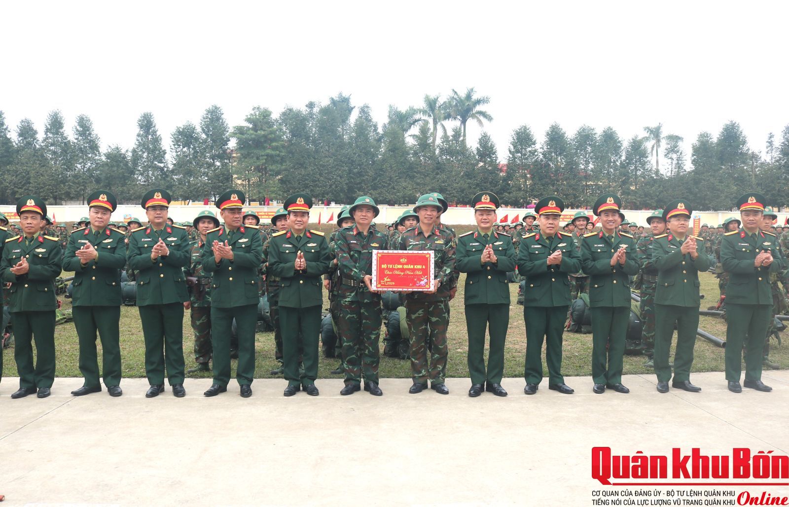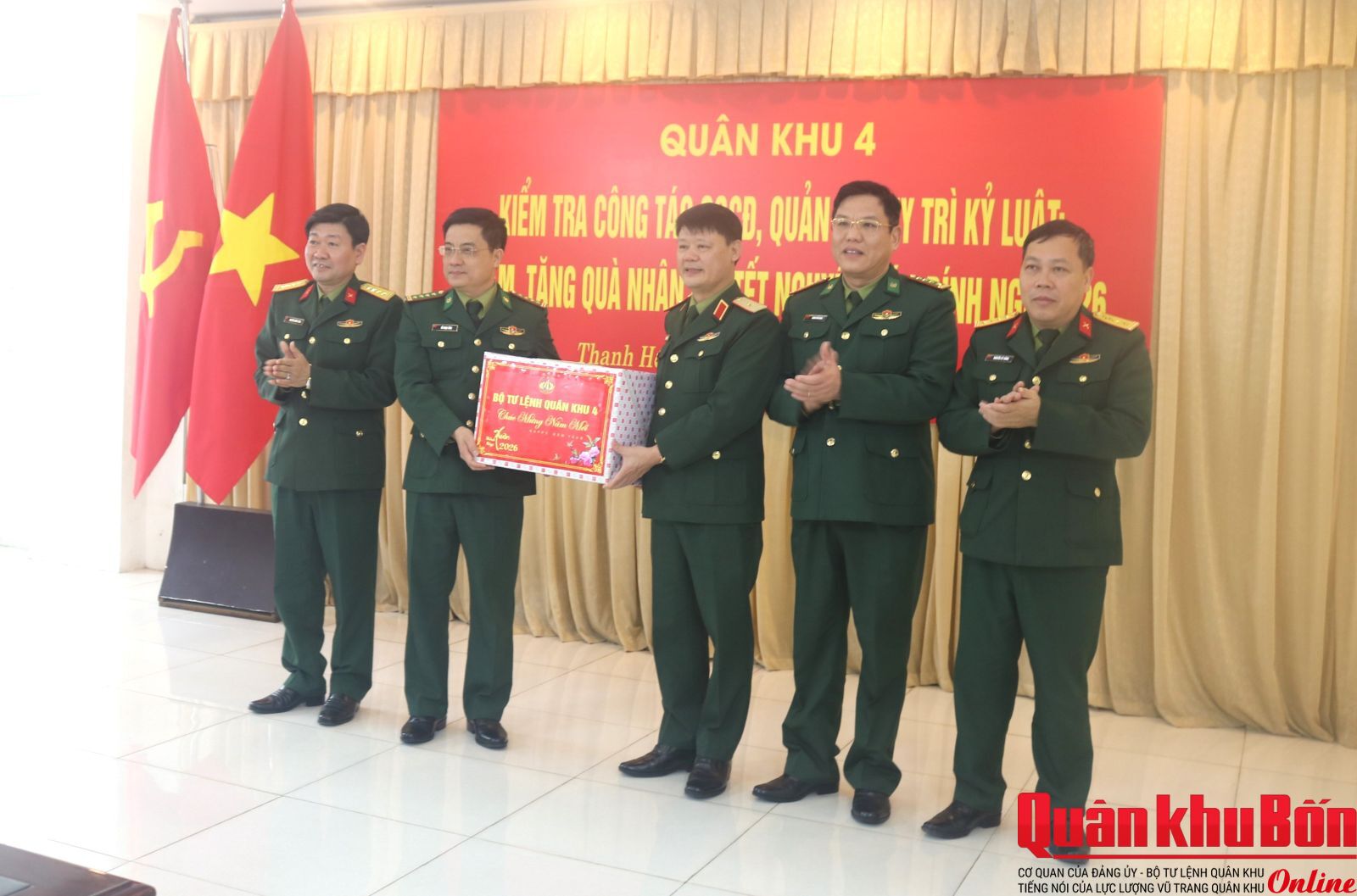 Trao quà chúc Tết của Bộ Quốc phòng, Bộ Tư lệnh Quân khu, Thiếu tướng Hoàng Duy Chiến, Phó Tư lệnh Quân khu chúc cán bộ, chiến sĩ các đơn vị năm mới an khang, thịnh vượng, hoàn thành xuất sắc mọi nhiệm vụ được giao.