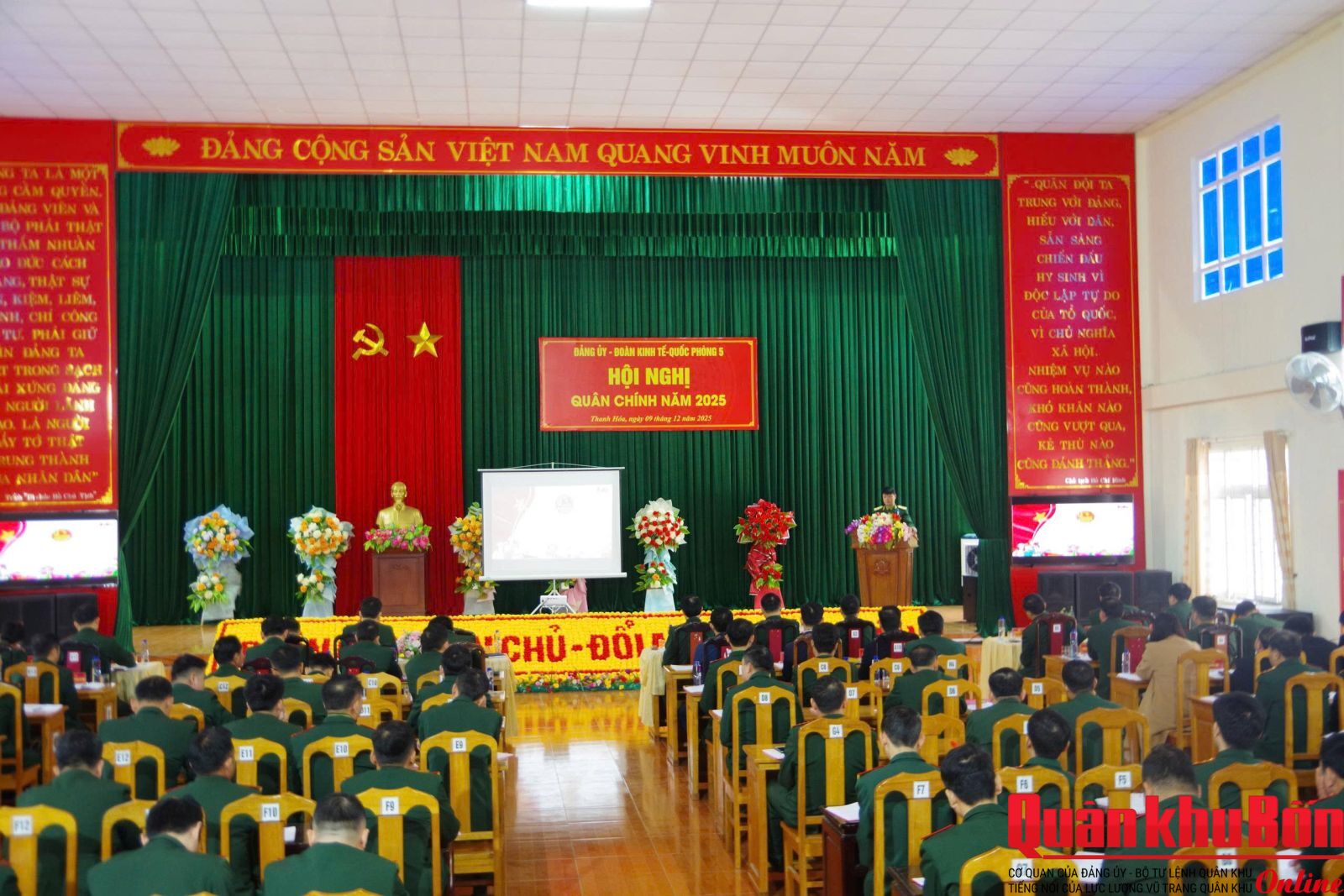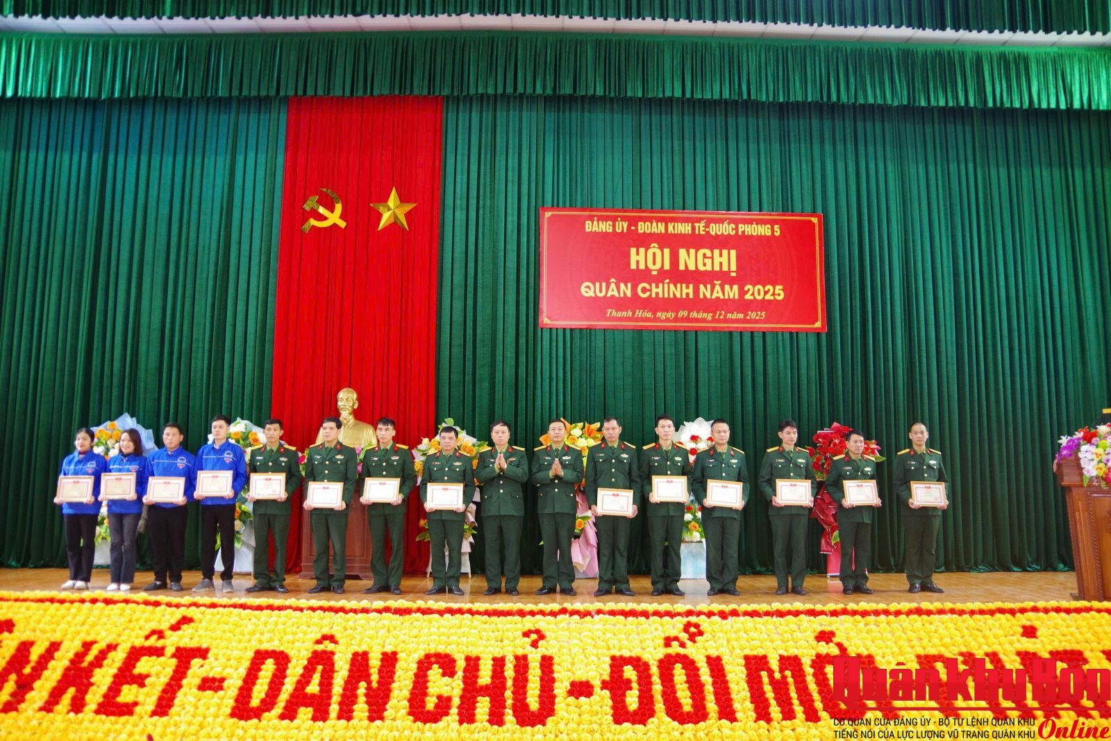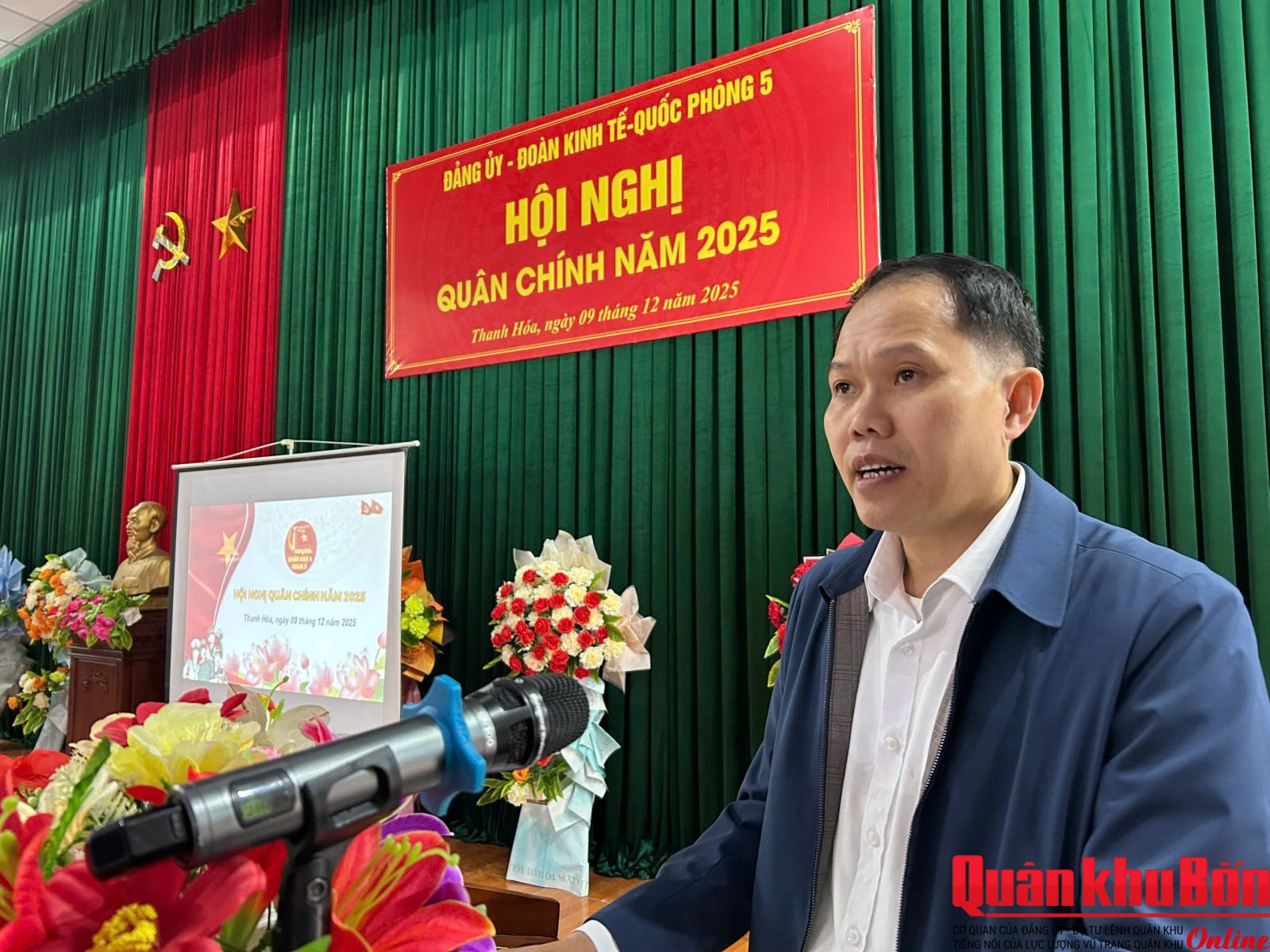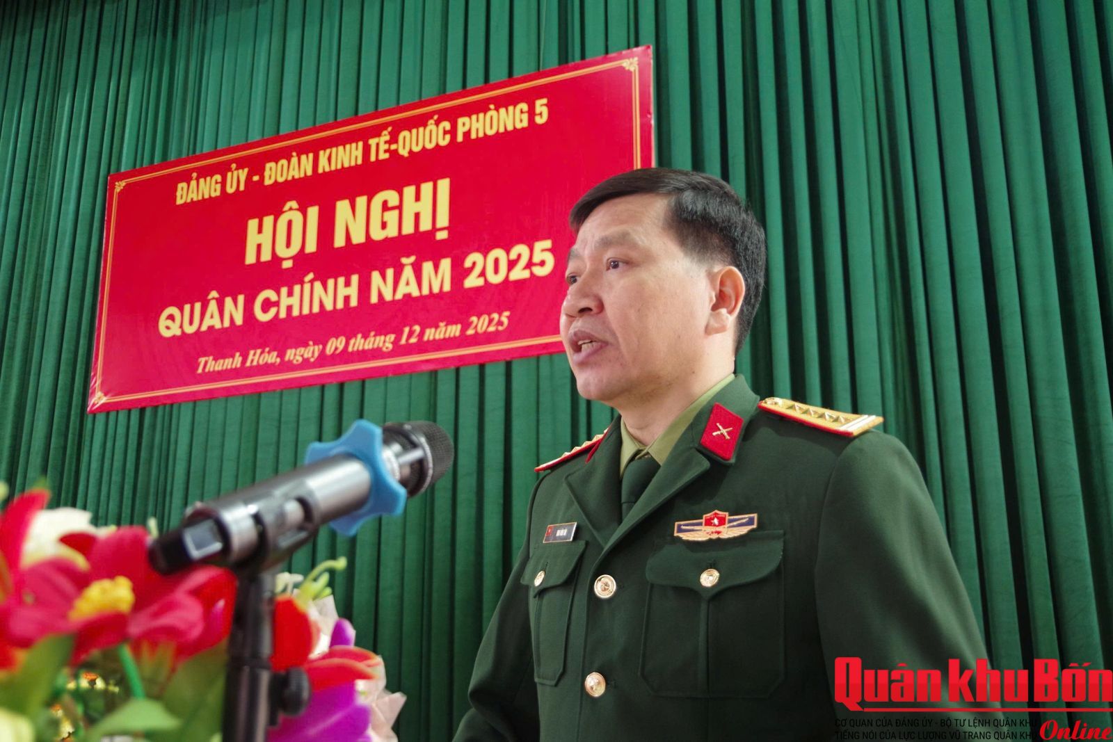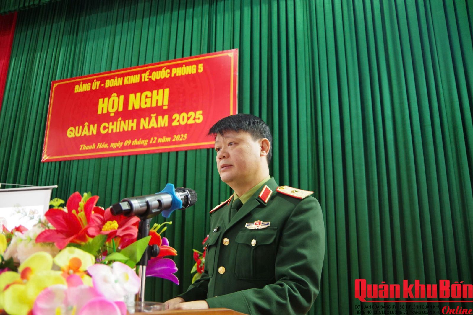 Sáng ngày 9/12/2025, Đoàn Kinh tế - Quốc phòng 5 tổ chức Hội nghị Quân chính năm 2025. Thiếu tướng Hoàng Duy Chiến, Phó Tư lệnh Quân khu dự và phát biểu chỉ đạo Hội nghị. Đại tá Lê Vinh, Đoàn trưởng chủ trì Hội nghị.