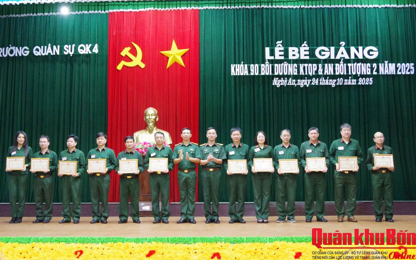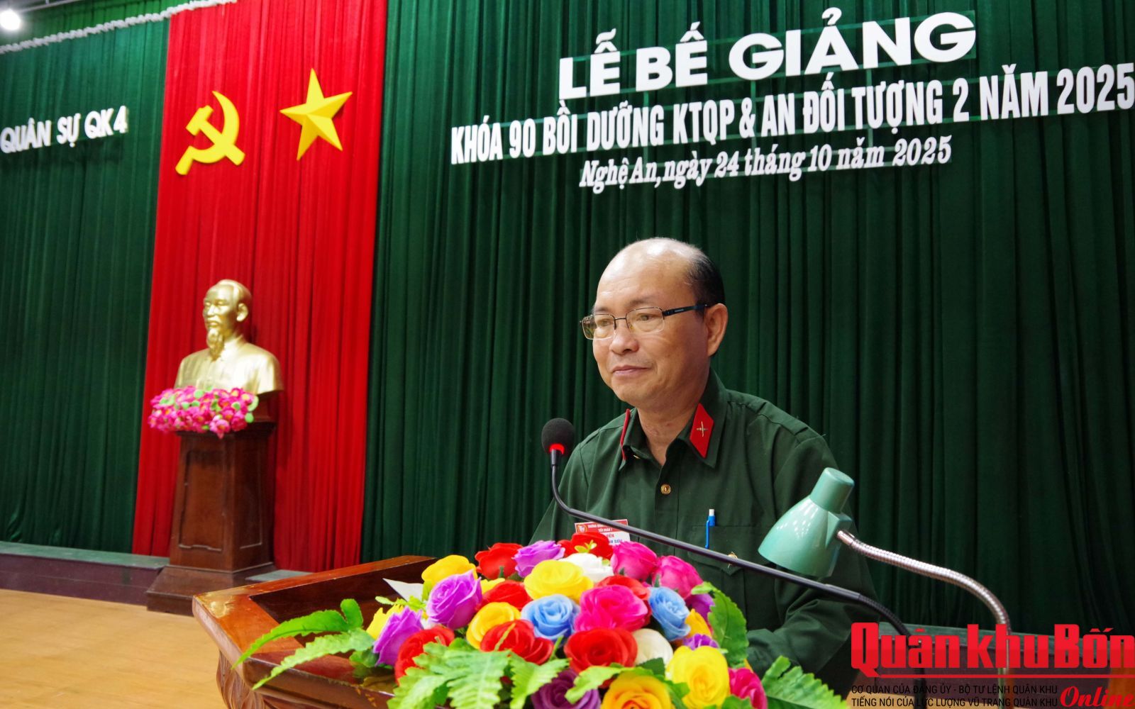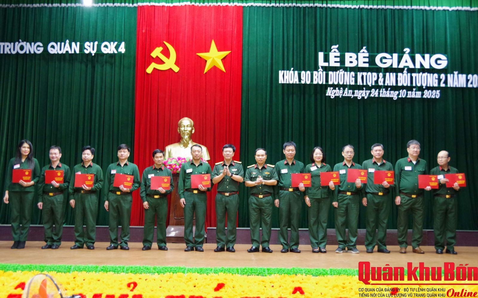 Sáng ngày 24/10/2025, Trường Quân sự Quân khu tổ chức Lễ bế giảng Lớp bồi dưỡng kiến thức quốc phòng và an ninh (QP&AN) đối tượng 2, khóa 90. Thiếu tướng Lê Hồng Nhân, Ủy viên Ban Thường vụ Đảng ủy, Phó Tư lệnh, Tham mưu trưởng, Phó Chủ tịch thường trực Hội đồng Giáo dục Quốc phòng và An ninh Quân khu chủ trì và phát biểu bế giảng. Tham dự bế giảng có thủ trưởng các cơ quan Quân khu; Phòng Dân quân tự vệ (Bộ Tham mưu Quân khu); Ban Giám hiệu, các phòng, khoa, đơn vị Trường Quân sự Quân khu.