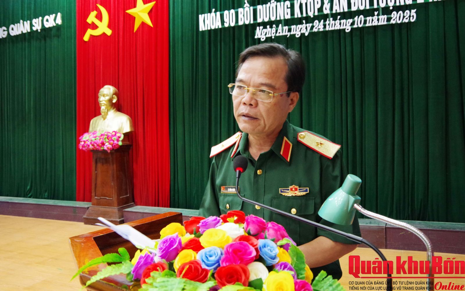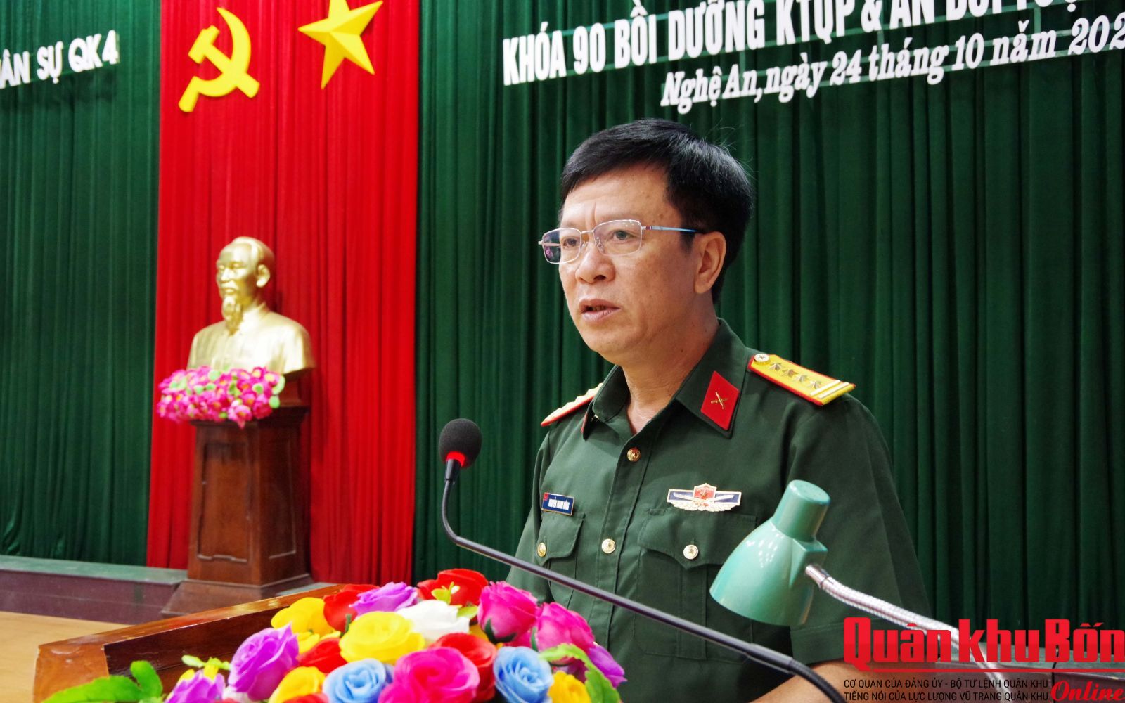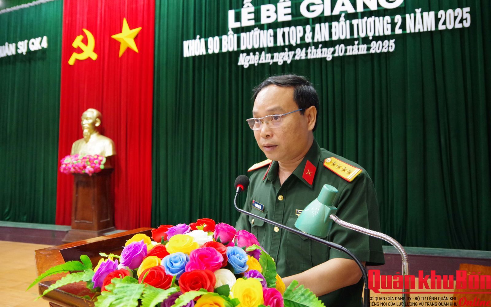 Sáng ngày 24/10/2025, Trường Quân sự Quân khu tổ chức Lễ bế giảng Lớp bồi dưỡng kiến thức quốc phòng và an ninh (QP&AN) đối tượng 2, khóa 90. Thiếu tướng Lê Hồng Nhân, Ủy viên Ban Thường vụ Đảng ủy, Phó Tư lệnh, Tham mưu trưởng, Phó Chủ tịch thường trực Hội đồng Giáo dục Quốc phòng và An ninh Quân khu chủ trì và phát biểu bế giảng. Tham dự bế giảng có thủ trưởng các cơ quan Quân khu; Phòng Dân quân tự vệ (Bộ Tham mưu Quân khu); Ban Giám hiệu, các phòng, khoa, đơn vị Trường Quân sự Quân khu.