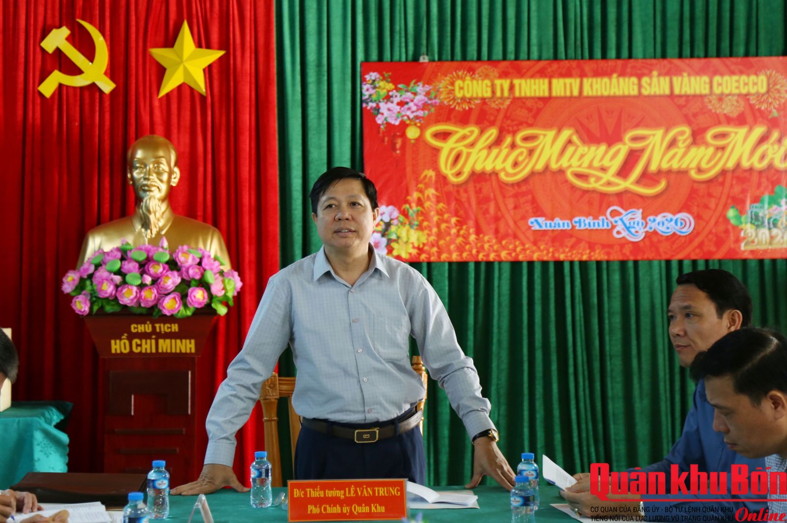 Sau khi nghe chỉ huy các cơ quan, đơn vị báo cáo kết quả nổi bật đạt được trong thời gian qua, cùng những khó khăn, vướng mắc, Thiếu tướng Lê Văn Trung ghi nhận, biểu dương những thành tích của tập thể cán bộ, nhân viên các xí nghiệp, công ty, đặc biệt là trong hoạt động sản xuất, kinh doanh gắn với công tác an sinh xã hội, hỗ trợ nhân dân địa phương xóa đói, giảm nghèo; qua đó góp phần vun đắp, tăng cường mối quan hệ đoàn kết, hữu nghị đặc biệt giữa Quân khu 4 với các cơ quan, đơn vị và địa phương của nước bạn Lào.
