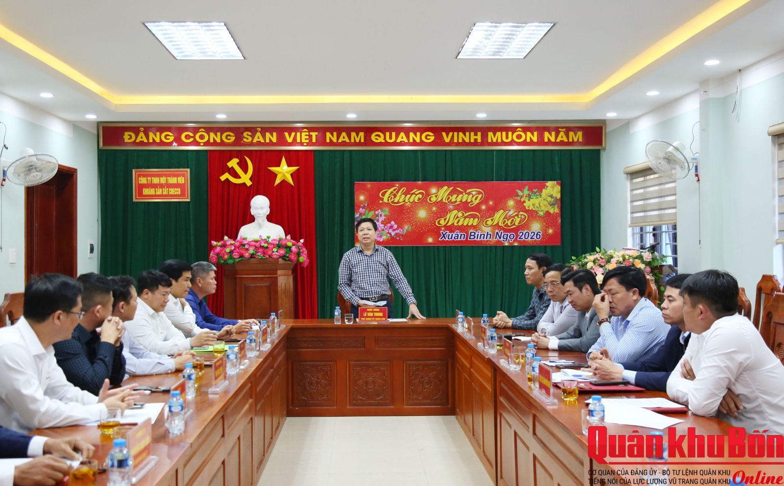 Theo đó, Đoàn công tác đã đến thăm, chúc Tết cán bộ, nhân viên Công ty TNHH MTV Khoáng sản vàng Coecco; Xí nghiệp Sản Luồng, Mường Om; Công ty Khoáng sản luyện kim Viêng Chăn; Công ty Khoáng sản sắt Coecco (thuộc Tổng Công ty Hợp tác Kinh tế Coecco).