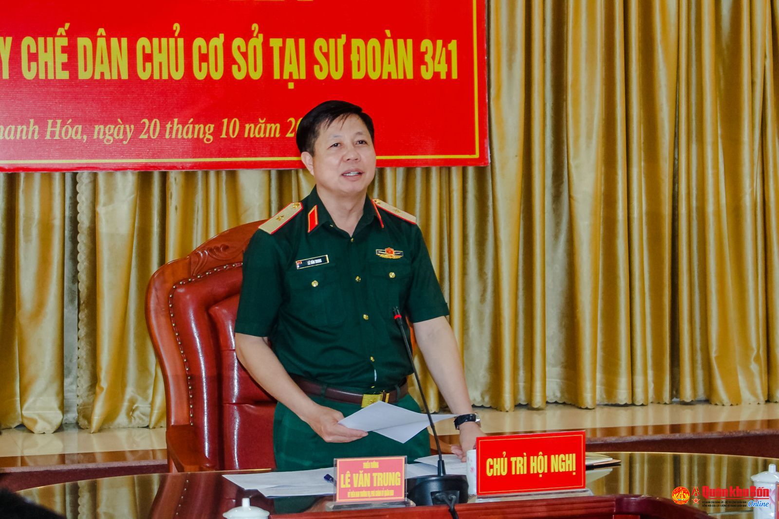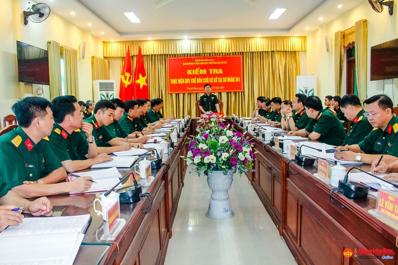 Chiều ngày 20/10/2025, đoàn công tác Ban Chỉ đạo thực hiện Quy chế dân chủ cơ sở (QCDCCS) của Đảng ủy Quân khu 4 do Thiếu tướng Lê Văn Trung, Phó Chính ủy Quân khu làm Trưởng đoàn đã tiến hành kiểm tra kết quả thực hiện QCDCCS tại Sư đoàn 341. Tham dự đoàn có Đại tá Thái Đức Hạnh, Phó Chủ nhiệm Chính trị Quân khu cùng đại biểu các cơ quan chức năng Quân khu.