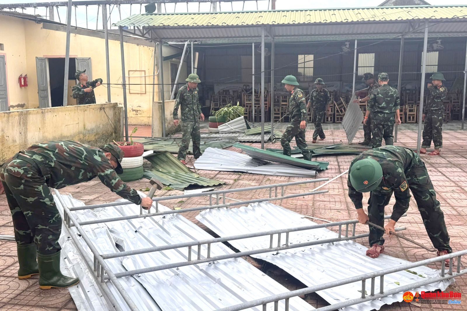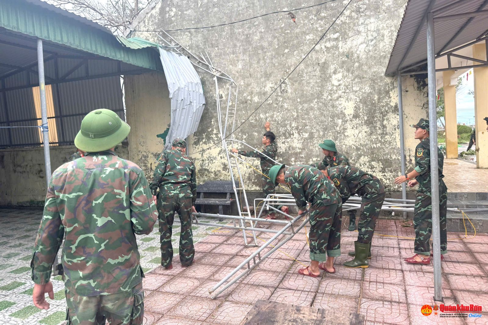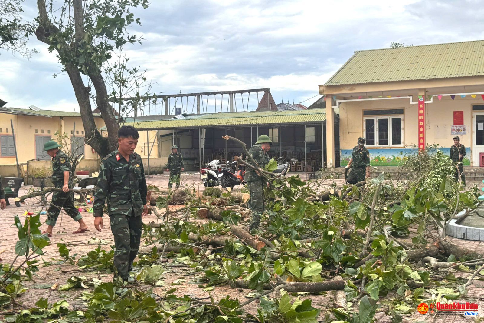 Tiểu đoàn Đặc công 31 giúp Trường Tiểu học Xuân Hải khắc phục hậu quả bão số 10