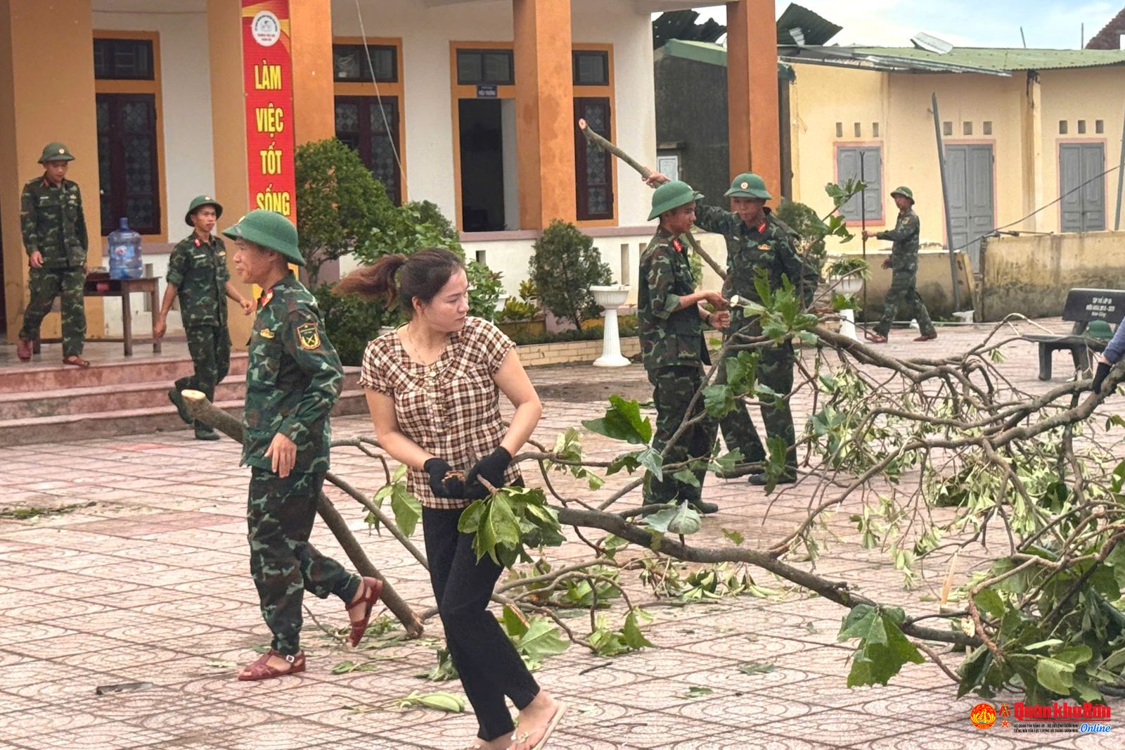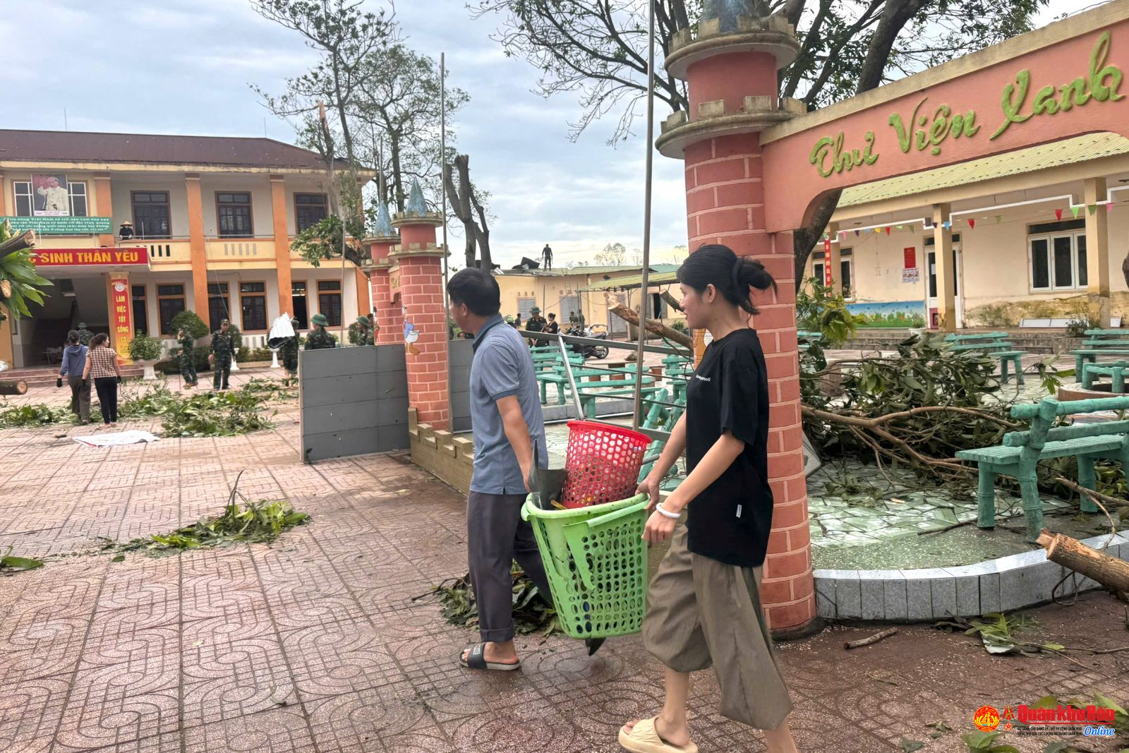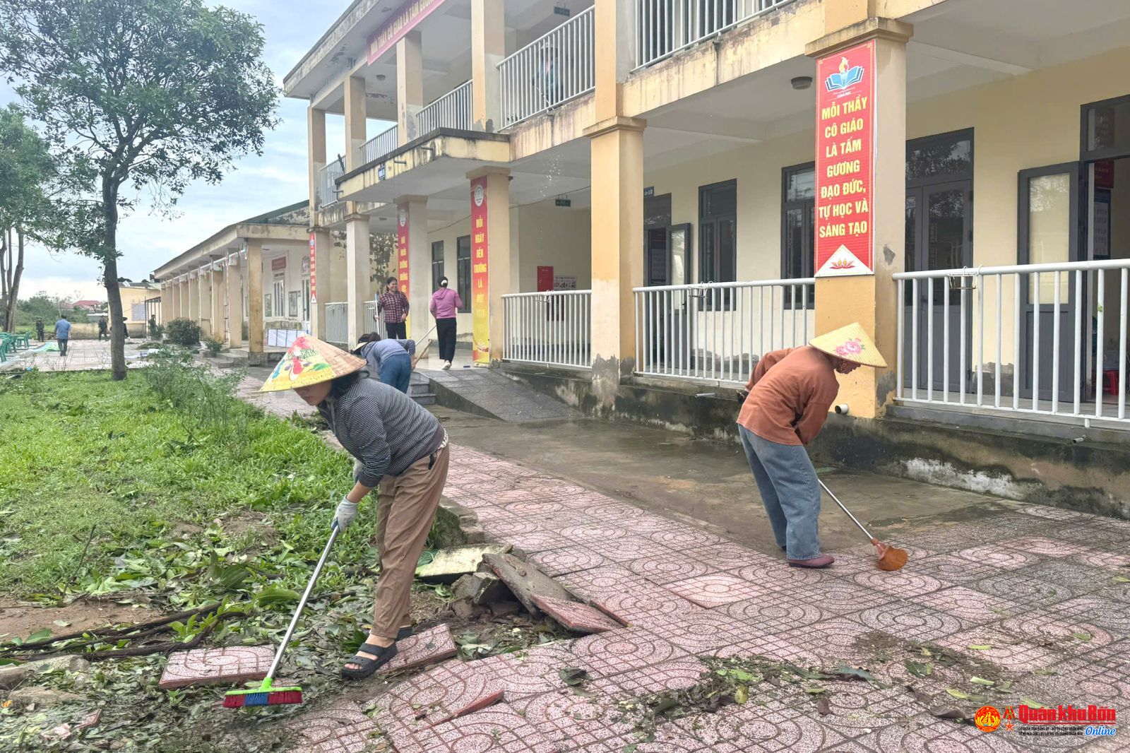 Tiểu đoàn Đặc công 31 giúp Trường Tiểu học Xuân Hải khắc phục hậu quả bão số 10