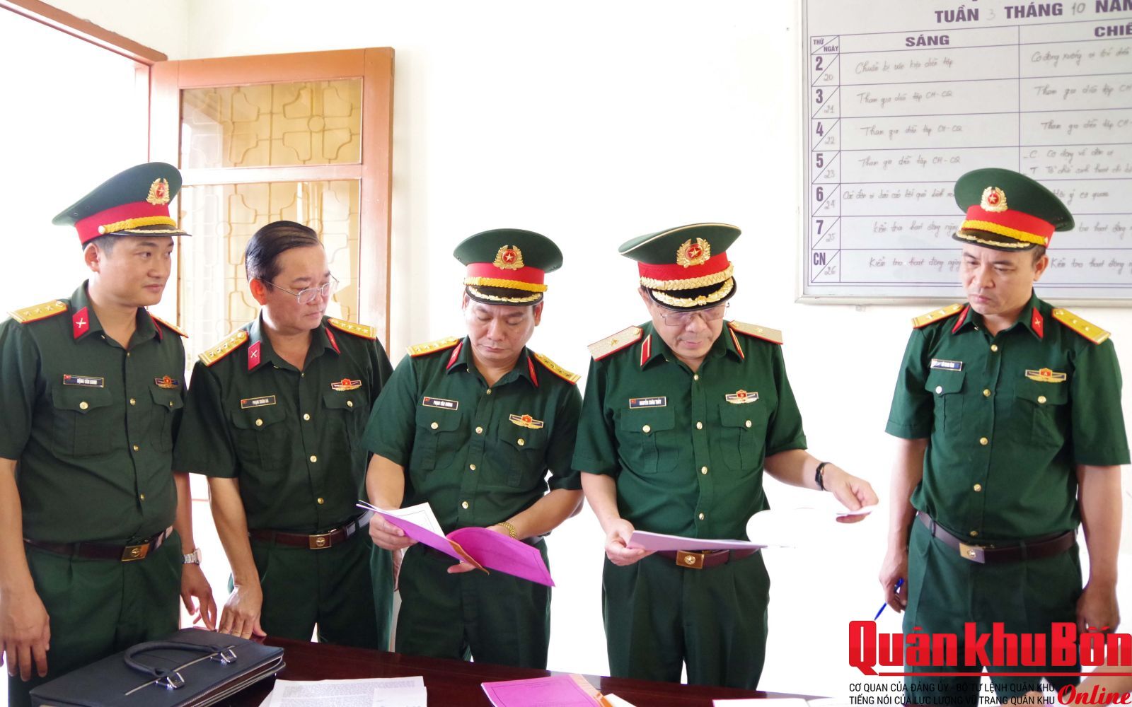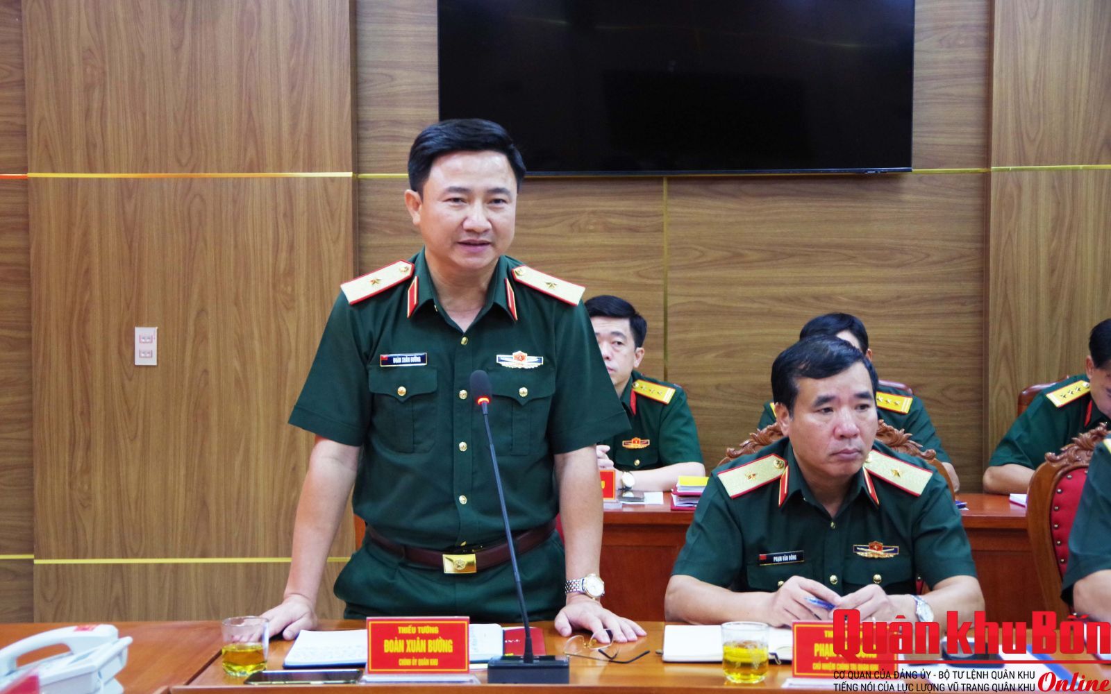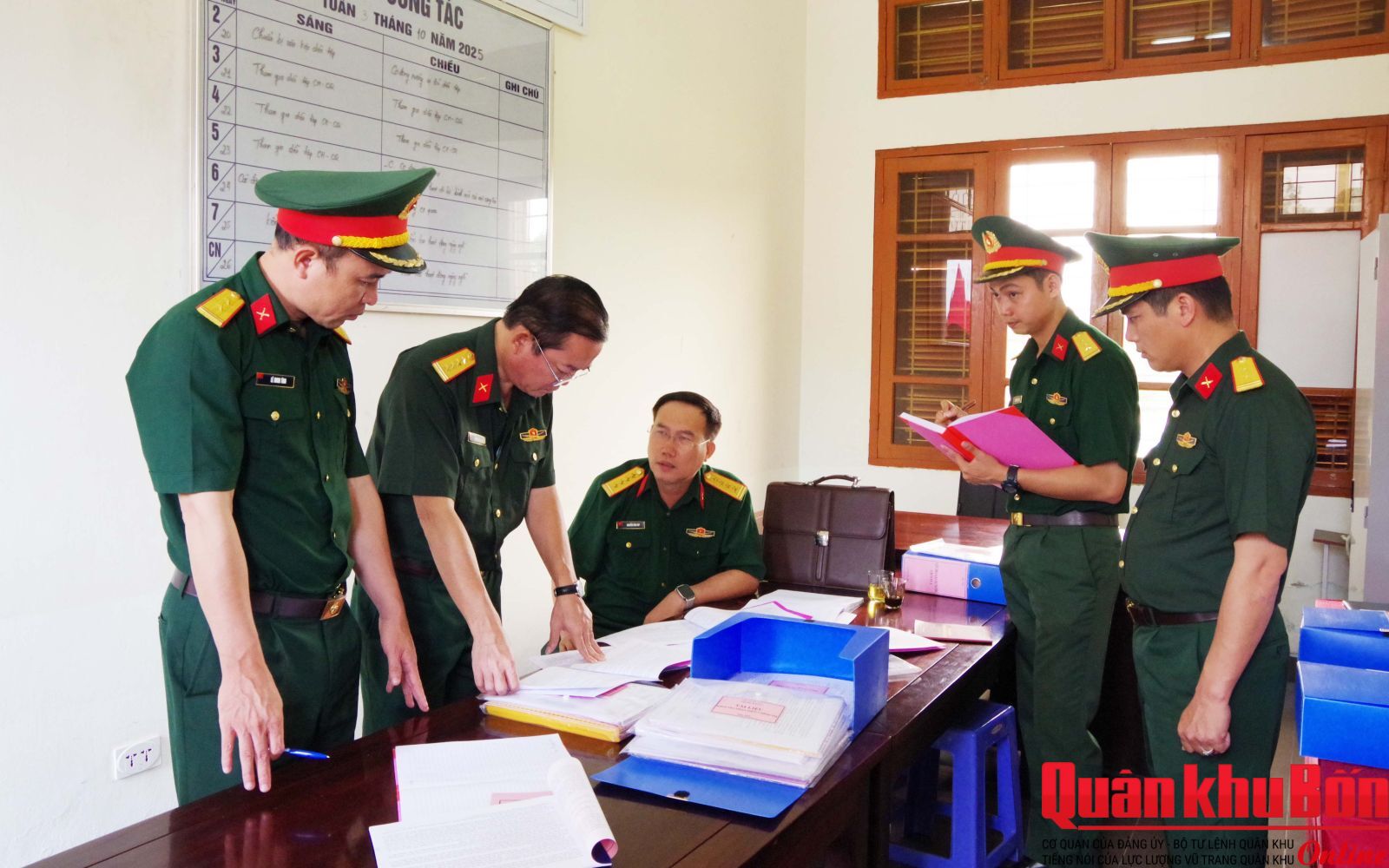 Thiếu tướng Đoàn Xuân Bường, Bí thư Đảng ủy, Chính ủy Quân khu; Thiếu tướng Phạm Văn Đông, Ủy viên Ban Thường vụ Đảng ủy, Chủ nhiệm Chính trị Quân khu, cùng các phòng chức năng của cơ quan Quân khu, Văn phòng Bộ Tư lệnh Quân khu dự, theo dõi và làm việc với đoàn.
