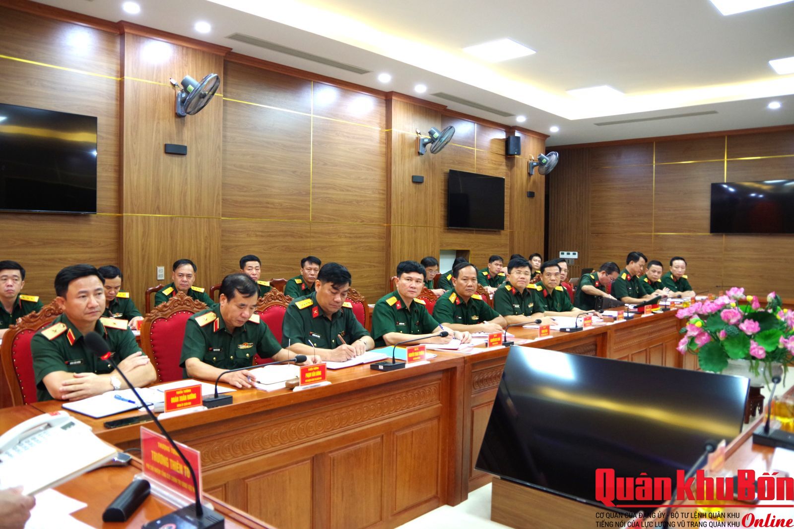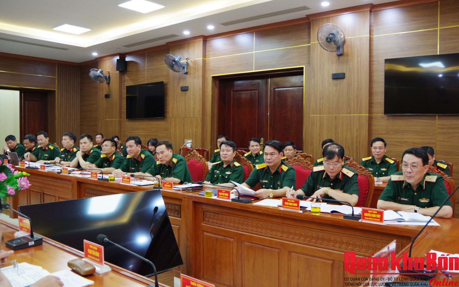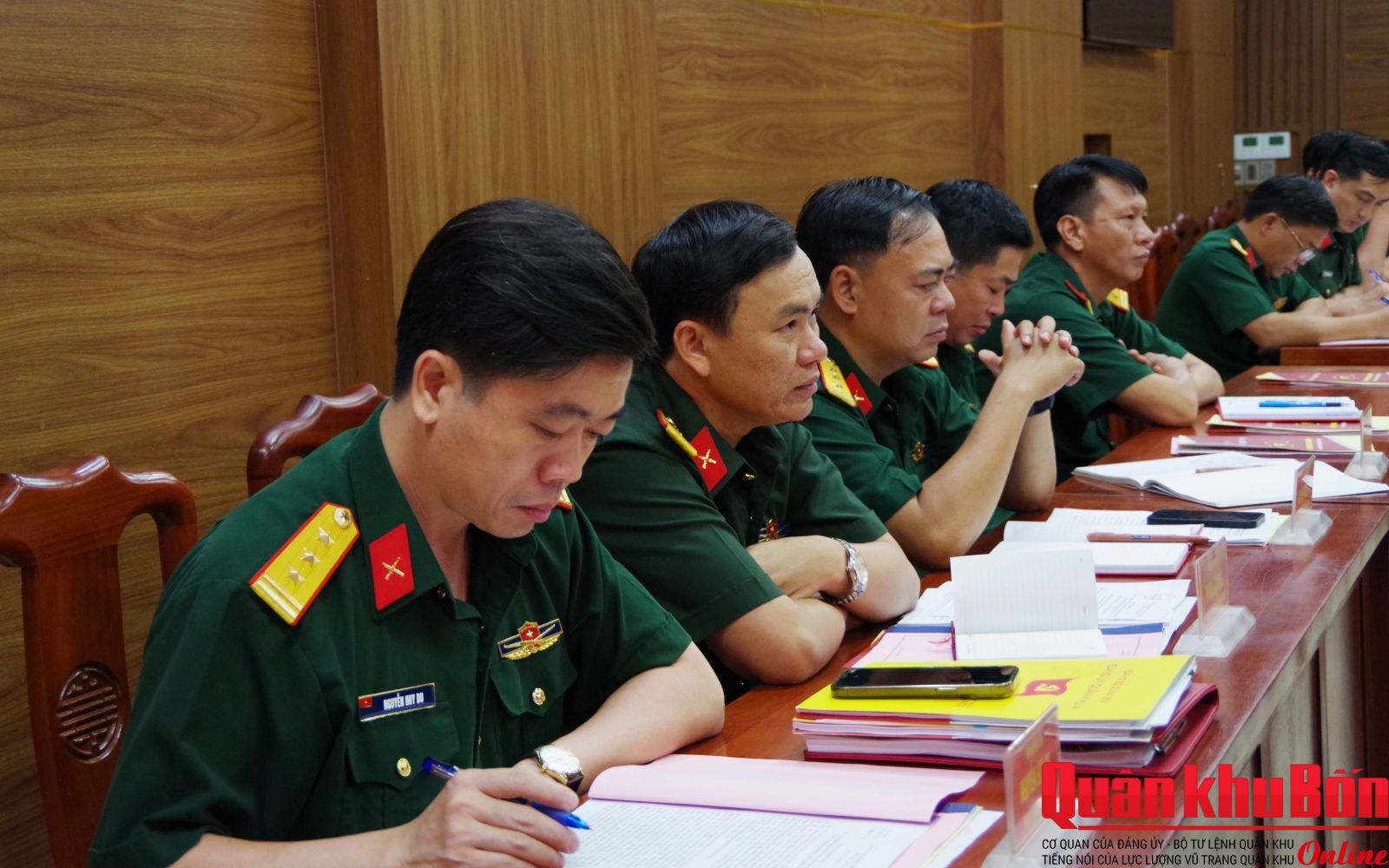 Thiếu tướng Đoàn Xuân Bường, Bí thư Đảng ủy, Chính ủy Quân khu; Thiếu tướng Phạm Văn Đông, Ủy viên Ban Thường vụ Đảng ủy, Chủ nhiệm Chính trị Quân khu, cùng các phòng chức năng của cơ quan Quân khu, Văn phòng Bộ Tư lệnh Quân khu dự, theo dõi và làm việc với đoàn.