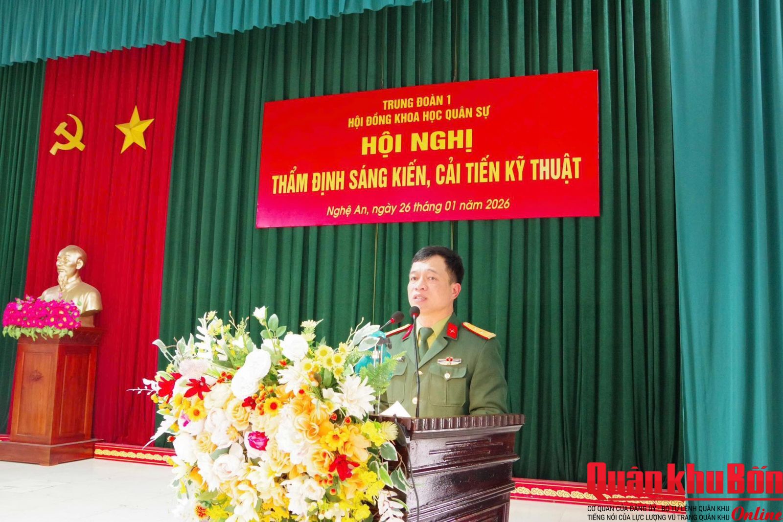Tại Hội nghị, Hội đồng Khoa học Quân sự Trung đoàn đã nghe các cá nhân, nhóm tác giả trình bày nội dung sáng kiến, cải tiến kỹ thuật; đồng thời tiến hành thẩm định, đánh giá và chấm điểm nghiêm túc, khách quan, đúng quy chế.