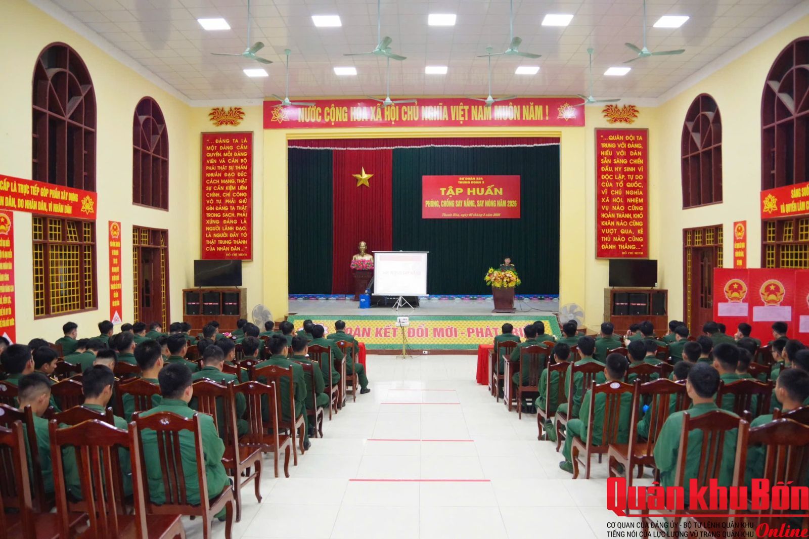 Tại buổi tập huấn, cán bộ được quán triệt những nội dung cơ bản về nguyên nhân, dấu hiệu nhận biết, biện pháp phòng tránh và cách xử trí ban đầu đối với các trường hợp say nắng, say nóng có thể xảy ra trong quá trình huấn luyện, lao động và thực hiện nhiệm vụ ngoài trời. Đồng thời, cán bộ quân y Trung đoàn cũng hướng dẫn cụ thể các biện pháp bảo đảm sức khỏe bộ đội trong điều kiện thời tiết nắng nóng; cách tổ chức huấn luyện khoa học, hợp lý, bảo đảm an toàn cho bộ đội.