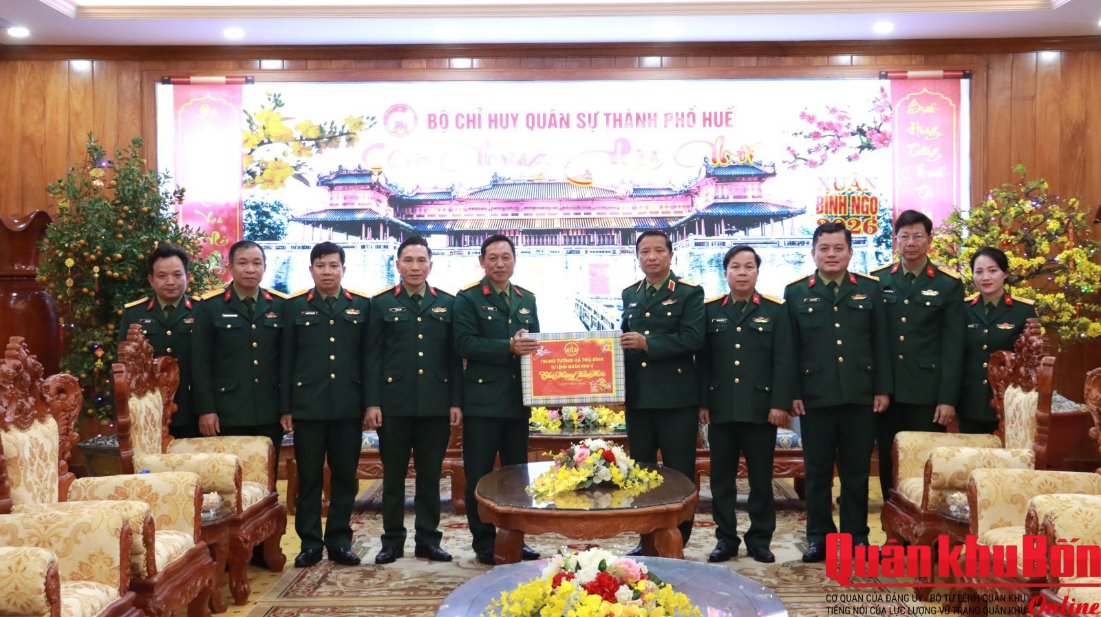 Nhân dịp tết Nguyên đán Bính Ngọ 2026, ngày 12/02/2026, Trung tướng Hà Thọ Bình, Tư lệnh Quân khu 4 đã đến thăm, chúc Tết Bộ Chỉ huy Quân sự (CHQS) thành phố Huế và các cơ quan, đơn vị trên địa bàn thành phố Huế. Cùng đi có Đại tá Phan Thắng, Chỉ huy trưởng, Đại tá Trương Viết Hải, Chính ủy Bộ CHQS thành phố Huế.