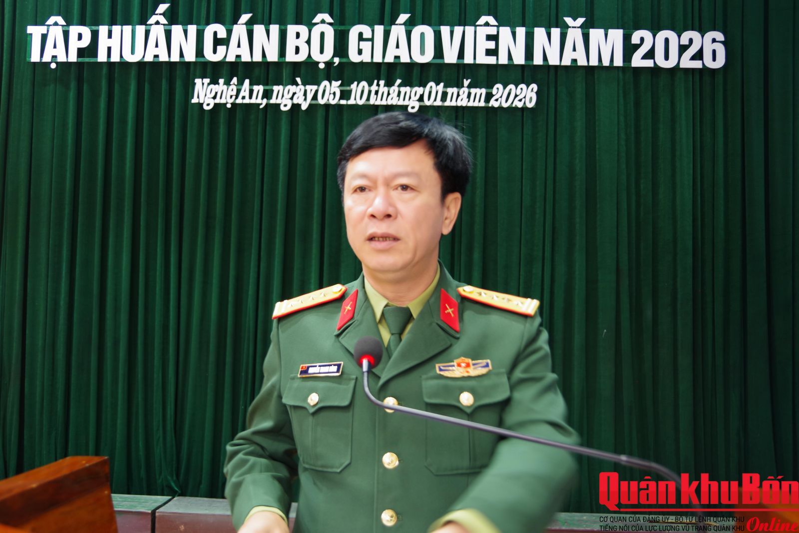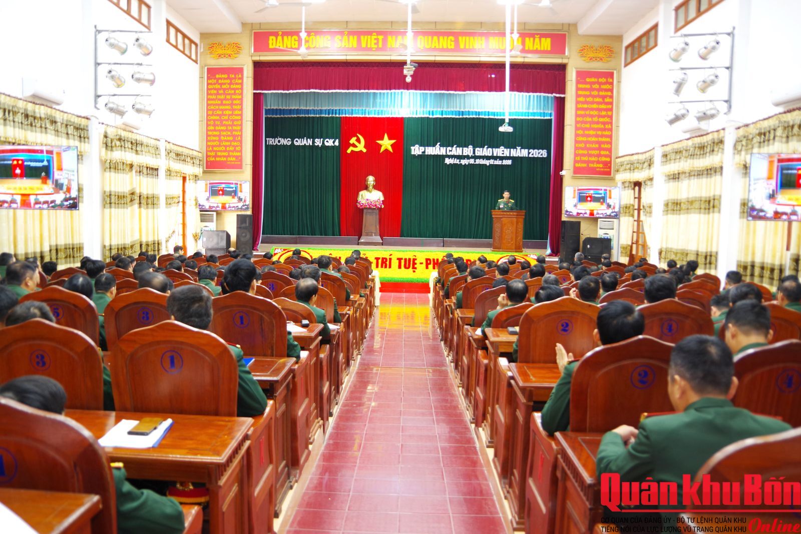 Từ ngày 05/01 đến 10/01/2026, Trường Quân sự Quân khu 4 đã tổ chức lớp tập huấn cán bộ năm 2026. Tham gia lớp tập huấn có 192 cán bộ, giáo viên trong toàn trường.