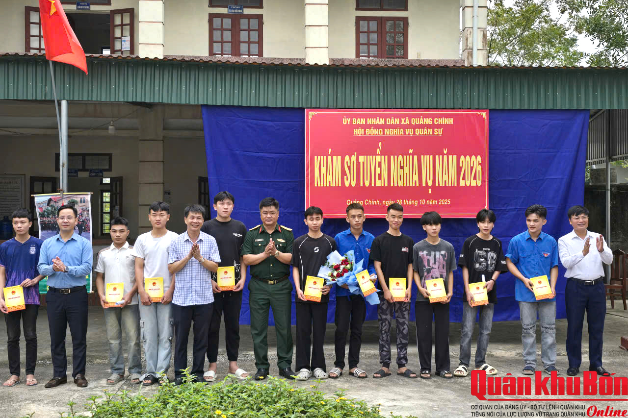 Trong hai ngày 28 và 29/10/2025, Hội đồng Nghĩa vụ Quân sự xã Quảng Chính, tỉnh Thanh Hóa đã tổ chức khám sơ tuyển nghĩa vụ quân sự và nghĩa vụ công an năm 2026 cho 230 nam thanh niên trong độ tuổi sẵn sàng nhập ngũ. Nhờ làm tốt công tác chuẩn bị, tuyên truyền và phối hợp giữa các ban, ngành, đoàn thể, đợt khám sơ tuyển diễn ra nghiêm túc, đúng quy định, đạt kết quả cao.