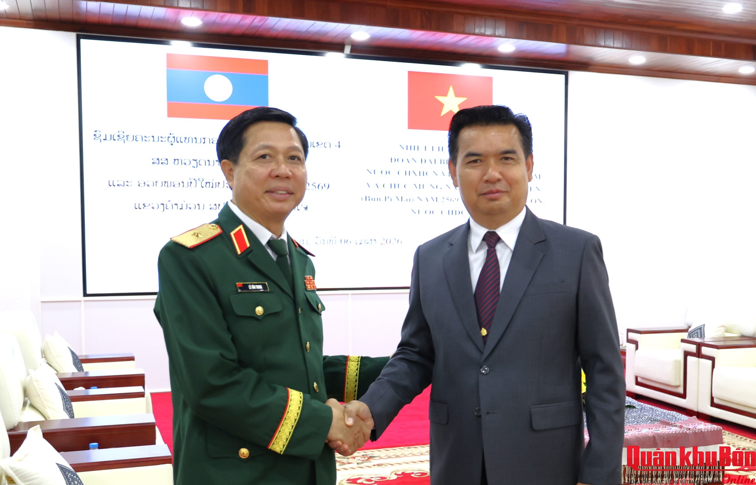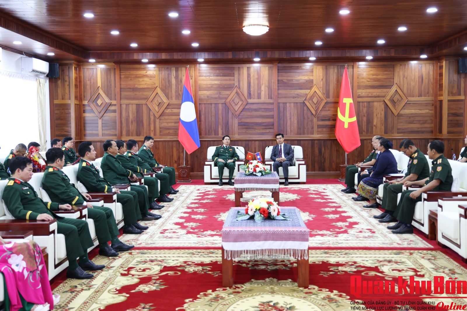 Tiếp tục chuyến công tác tại Lào, ngày 6/4/2026, Thiếu tướng Lê Văn Trung, Ủy viên Ban Thường vụ Đảng ủy, Phó Chính ủy Quân khu 4 cùng đoàn công tác Quân khu đã đến thăm, chúc Tết Đảng bộ, Chính quyền, Nhân dân và Lực lượng vũ trang (LLVT) tỉnh Khăm Muồn, Nước Cộng hòa dân chủ Nhân dân Lào nhân dịp Tết cổ truyền Bunpimay năm 2026.