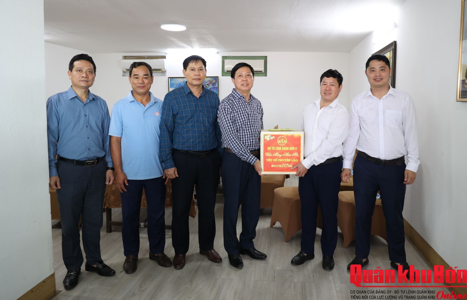 Dịp này, Thiếu tướng Lê Văn Trung đã trao tặng những phần quà ý nghĩa và gửi lời chúc năm mới an khang, thịnh vượng tới toàn thể cán bộ, chiến sĩ và nhân dân tỉnh Khăm Muồn. Đồng chí khẳng định mối quan hệ hữu nghị vĩ đại, đoàn kết đặc biệt giữa Quân khu 4 và các đơn vị, địa phương của Lào sẽ mãi mãi được giữ gìn, vun đắp, đời đời bền vững.