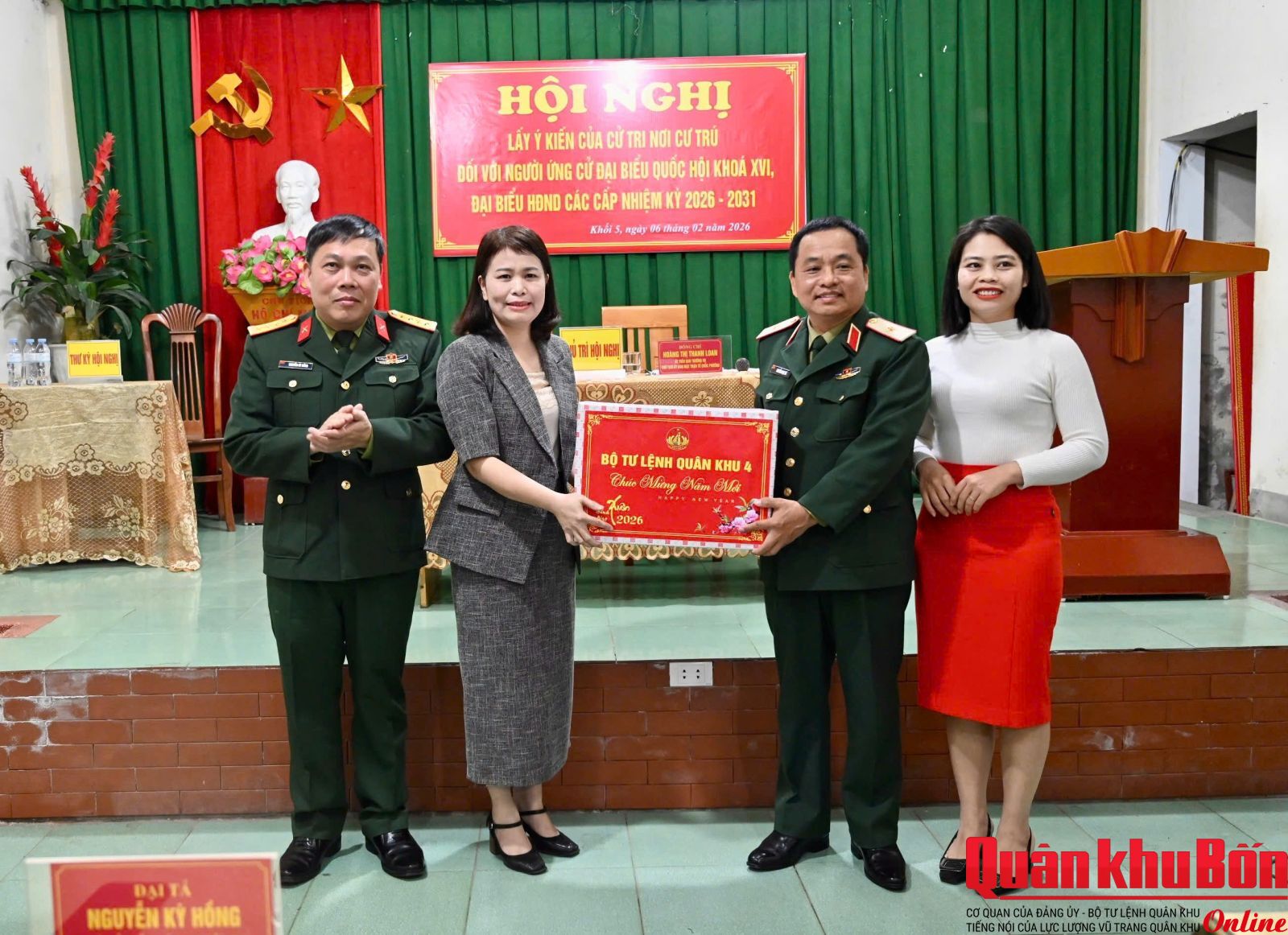 Tối ngày 6/2/2026, Ủy ban Nhân dân phối hợp với Ủy ban Mặt trận Tổ quốc Việt Nam phường Thành Vinh, tỉnh Nghệ An tổ chức Hội nghị lấy ý kiến cử tri nơi cư trú đối với người được giới thiệu ứng cử đại biểu Quốc hội khóa XVI và đại biểu Hội đồng nhân dân (HĐND) các cấp nhiệm kỳ 2026 – 2031. Thiếu tướng Nguyễn Ngọc Hà, Phó Tư lệnh Quân khu 4 tham gia giới thiệu ứng cử.