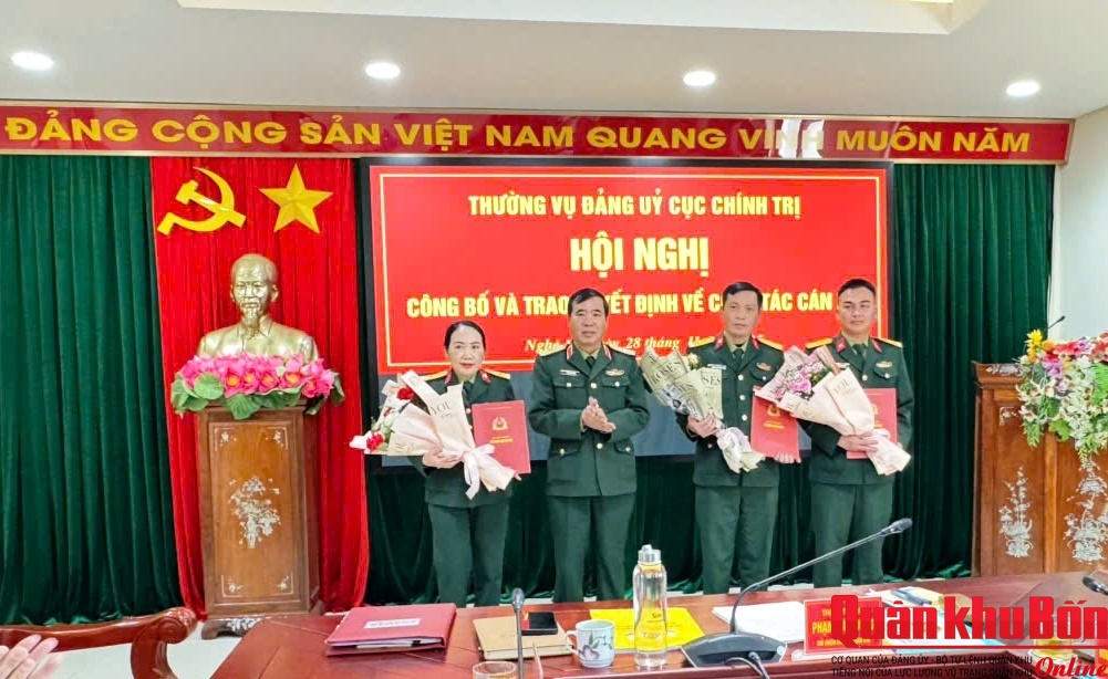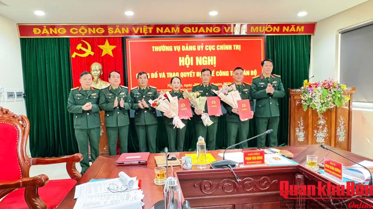 Tại Hội nghị, Thường vụ Đảng ủy Cục Chính trị Quân khu đã trao Quyết định cấp Thiếu tá lên Trung tá trước thời hạn đối với đồng chí Nguyễn Văn Hiền, Trợ lý Quân lực - Hành chính, Phòng Kế hoạch Tổng hợp; đồng chí Trương Công Nguyên, Trợ lý nhân sự, Phòng Cán bộ; nâng lương Trung tá trước thời hạn đối với đồng chí Nguyễn Thị Minh, Trợ lý Công đoàn, Phòng Công tác Quần chúng Cục Chính trị.
