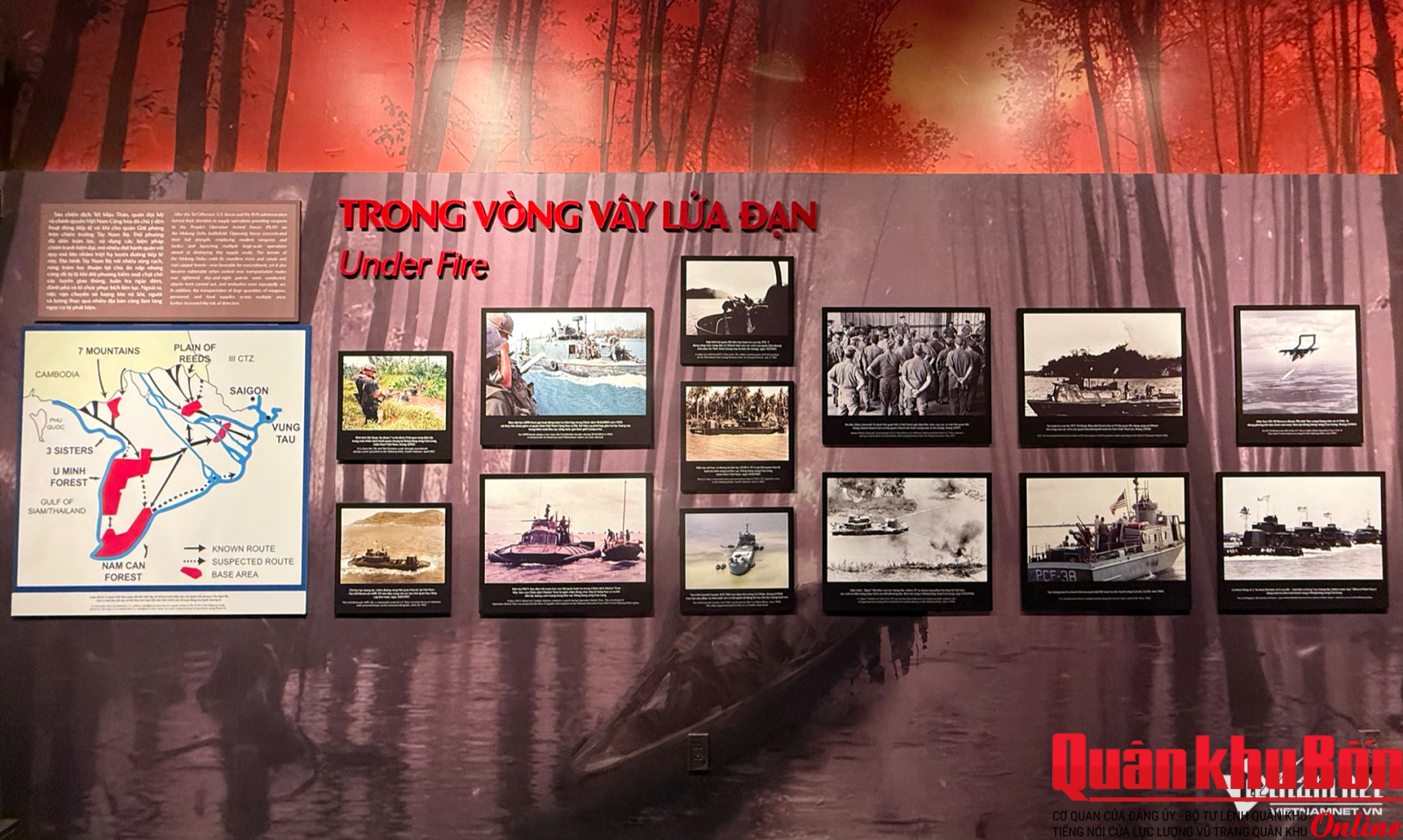 Phần hai của triển lãm với chủ đề Trong vòng vây lửa đạn là những hình ảnh về các hoạt động ngăn chặn của quân đội Mỹ và chính quyền Việt Nam Cộng hòa đối với đường 1C.