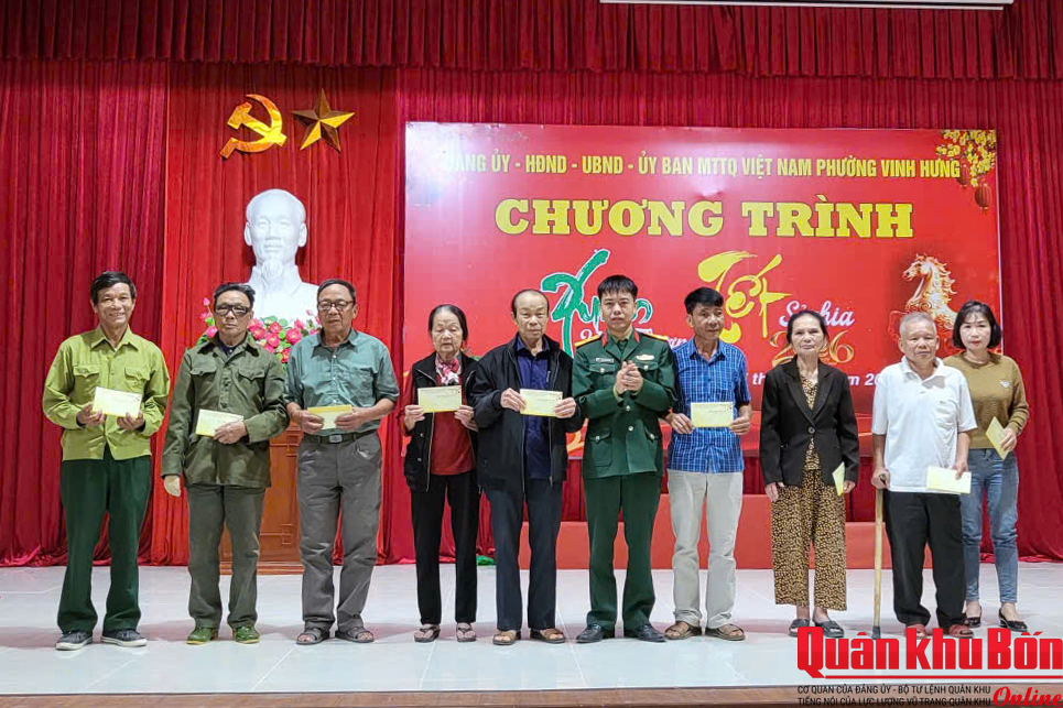 Tham gia chương trình, thay mặt Xưởng 467 (Cục Hậu cần - Kỹ thuật Quân khu 4), Trung tá Phan Văn Quang, Phó Giám đốc Xưởng 467 đã trao 10 suất quà tặng các gia đình chính sách, gia đình có hoàn cảnh khó khăn trên địa bàn phường Vinh Hưng.