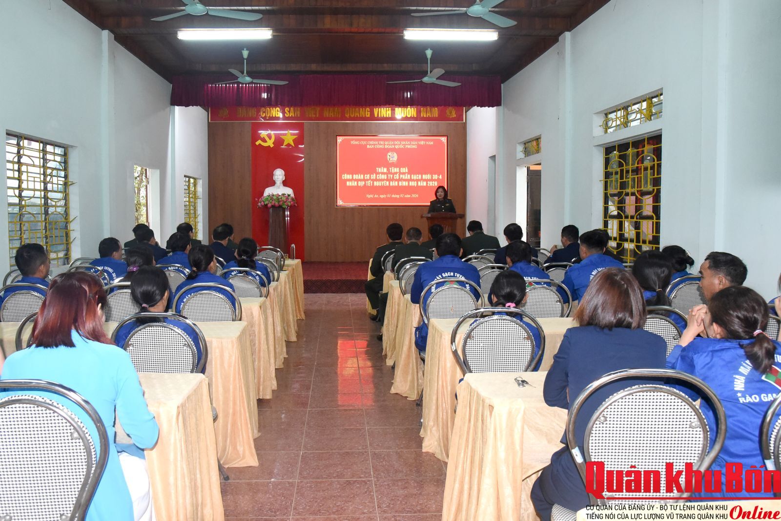 Tham gia đoàn công tác có Đại tá Thái Đức Hạnh, Phó Chủ nhiệm Chính trị Quân khu 4; Đại tá Bùi Thế Kỷ, Trưởng Phòng Công tác Quần chúng, Cục Chính trị Quân khu 4; Đại tá Nguyễn Văn Nam, Phó Tổng Giám đốc Tổng Công ty Hợp tác kinh tế; Đại tá Nguyễn Huy Chung, Trưởng phòng Chính trị Tổng Công ty Hợp tác kinh tế; cán bộ Ban Công đoàn Quốc phòng, Phòng Công tác Quần chúng Quân khu 4, Tổng Công ty Hợp tác kinh tế. Hoạt động nằm trong chương trình “Tết Sum vầy” nhằm kịp thời động viên, chăm lo đời sống vật chất và tinh thần cho cán bộ, đoàn viên công đoàn, người lao động có hoàn cảnh khó khăn mỗi dịp Tết đến, Xuân về.