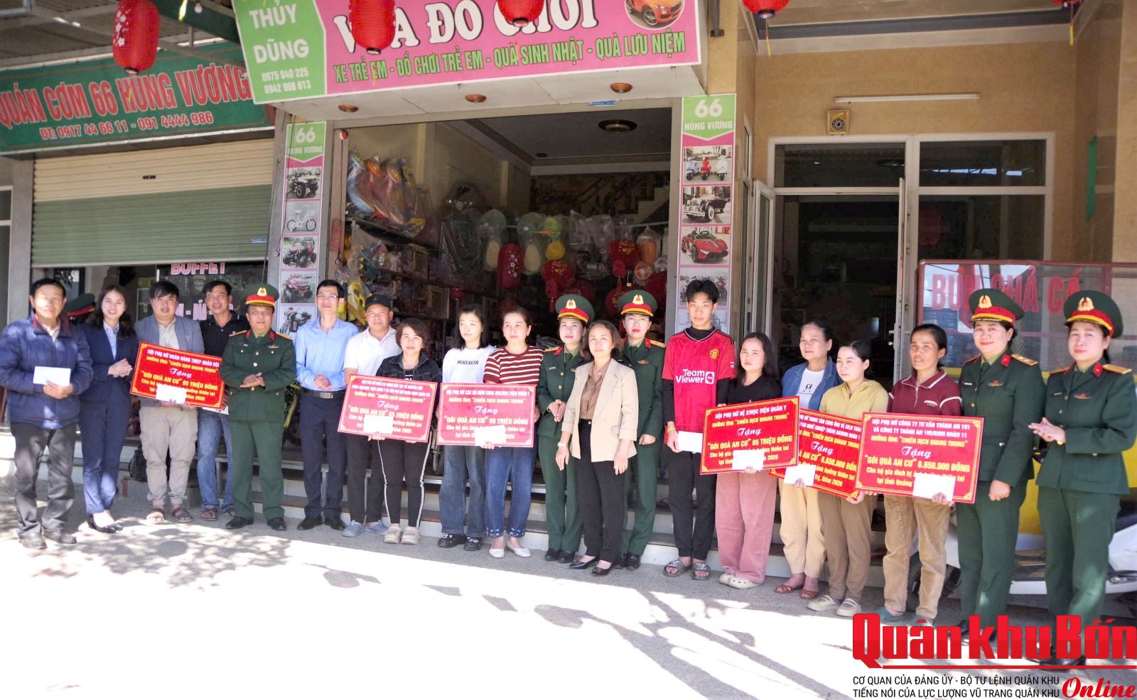 Nhân dịp này, Đoàn công tác đã trao 12 suất quà với tổng trị giá hơn 63 triệu đồng cho các hộ dân bị ảnh hưởng nặng bởi sạt lở. Các phần quà được trao thông qua sự kết nối của Bộ CHQS tỉnh với Phụ nữ Quân khu 4. Đây là nguồn động viên kịp thời, thể hiện tinh thần trách nhiệm, sự quan tâm, sẻ chia của lực lượng vũ trang và chính quyền địa phương, góp phần giúp bà con vượt qua khó khăn, ổn định cuộc sống.