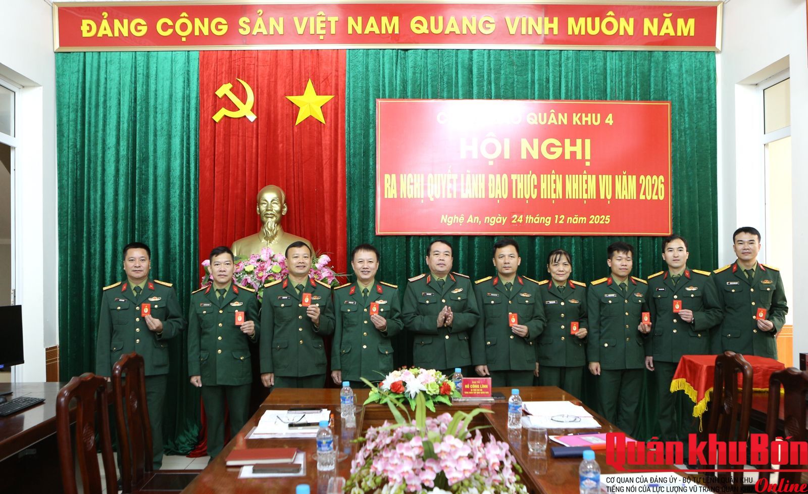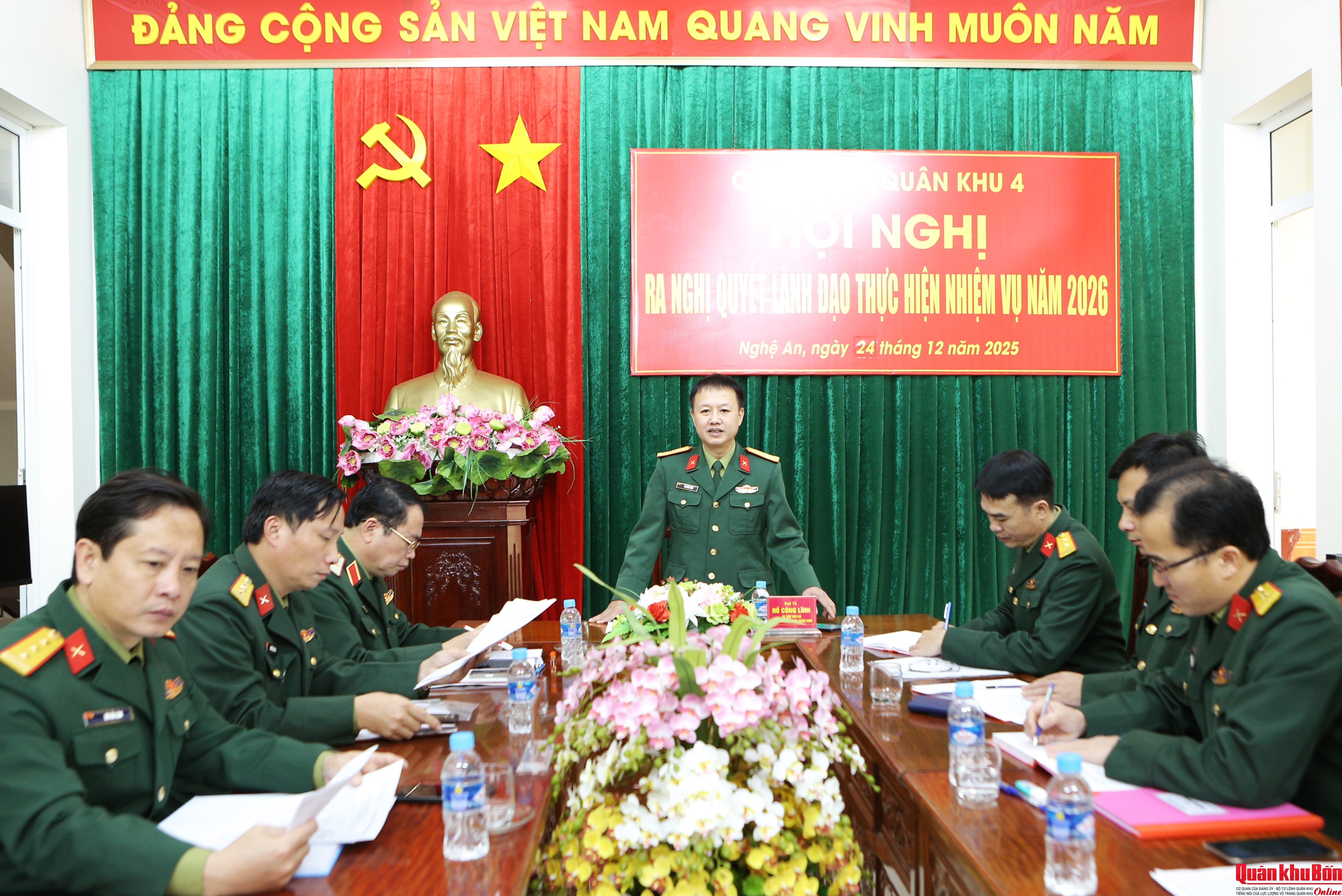 Sáng 24/12/2025, Chi bộ Báo Quân khu 4 tổ chức Hội nghị ra nghị quyết lãnh đạo thực hiện nhiệm vụ năm 2026. Thiếu tướng Phan Văn Sỹ, Bí thư Đảng ủy Cục Chính trị, Phó Chủ nhiệm Chính trị Quân khu dự, chỉ đạo. Đại tá Hồ Công Lĩnh, Bí thư Chi bộ, Tổng Biên tập Báo Quân khu 4 chủ trì hội nghị.