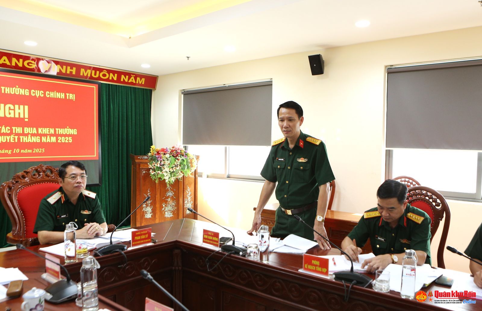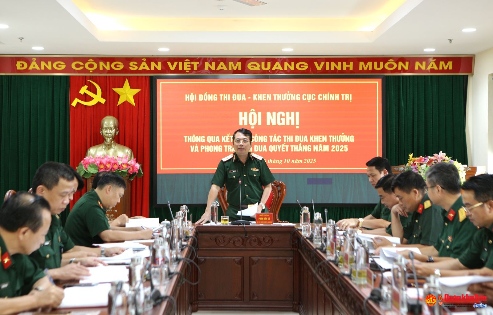 Chiều 16/10/2025, Hội đồng Thi đua - Khen thưởng Cục Chính trị Quân khu 4 tổ chức Hội nghị thông qua kết quả công tác thi đua, khen thưởng và phong trào thi đua quyết thắng năm 2025. Thiếu tướng Phạm Văn Đông, Ủy viên Ban Thường vụ Đảng ủy, Chủ nhiệm Chính trị Quân khu dự Hội nghị. Thiếu tướng Phan Văn Sỹ, Phó Chủ nhiệm Chính trị Quân khu, Bí thư Đảng ủy, Chủ tịch Hội đồng Thi đua - Khen thưởng Cục Chính trị chủ trì Hội nghị.