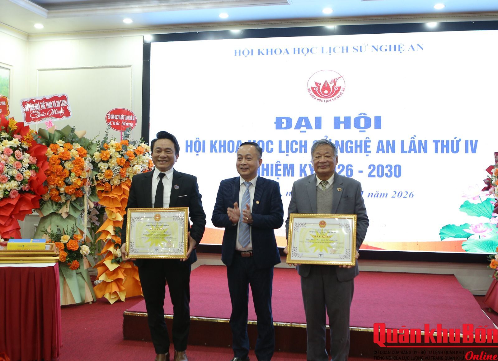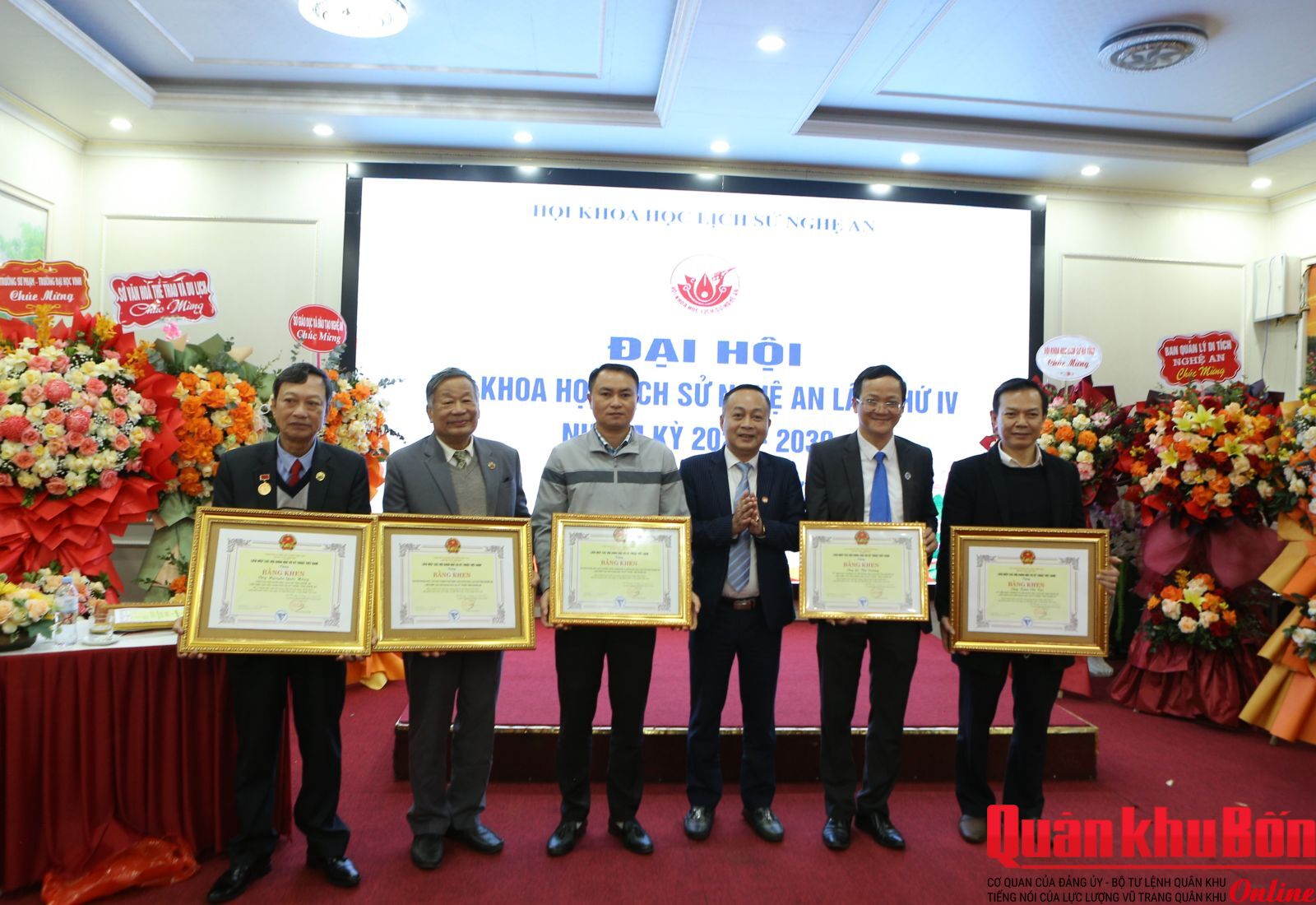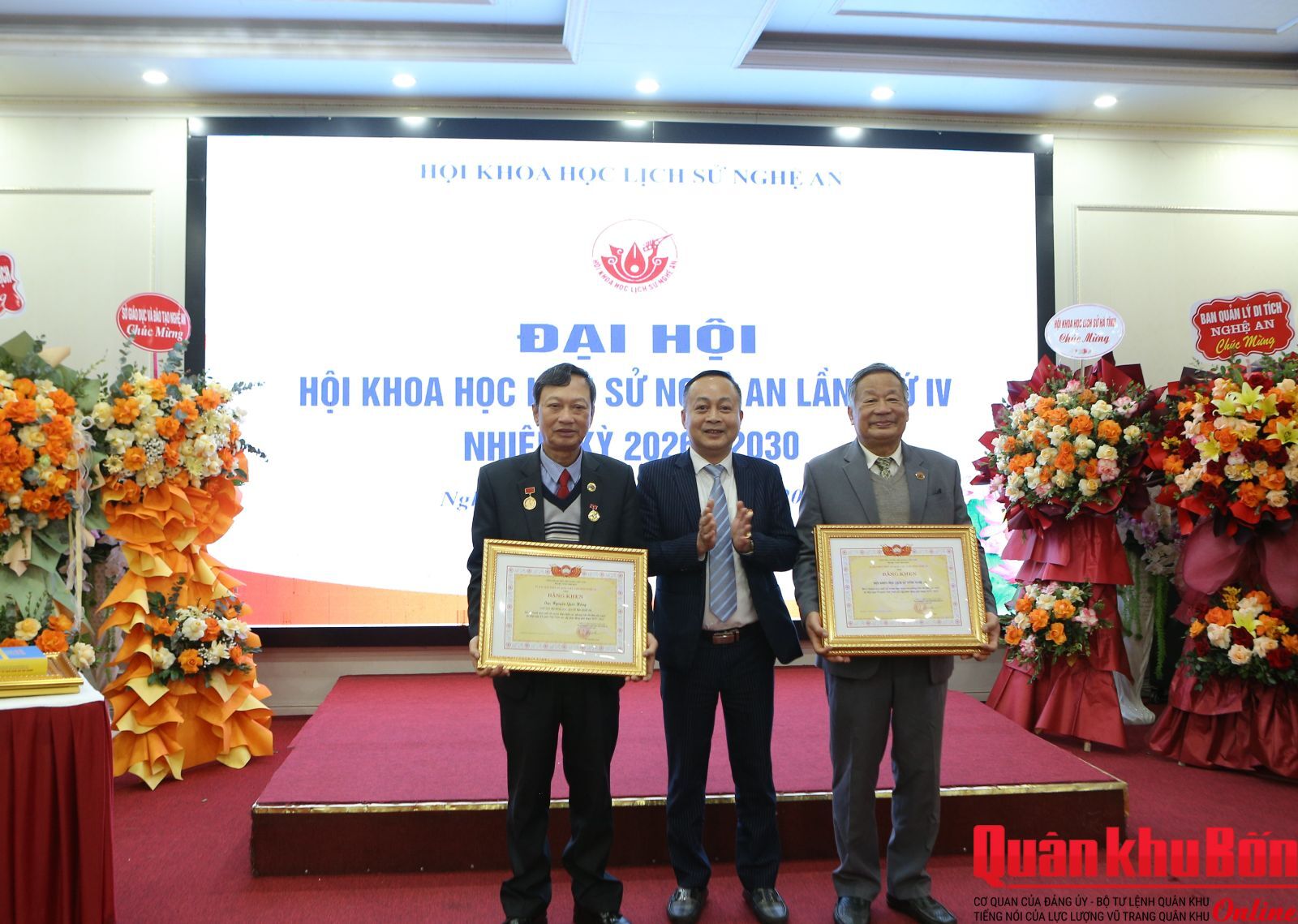 Dịp này, Đại hội đã trao nghị quyết, suy tôn PGS, TS Nguyễn Trọng Quân làm Chủ tịch danh dự Hội Khoa học lịch sử Nghệ An; trao Kỷ niệm chương, Bằng khen, Giấy khen của Liên hiệp các Hội Khoa học và Kỹ thuật Việt Nam, Hội Khoa học lịch sử Việt Nam, Ủy ban Nhân dân tỉnh Nghệ An, Ủy ban Mặt trận Tổ quốc tỉnh Nghệ An, Liên hiệp các Hội Khoa học và Kỹ thuật Nghệ An tặng các tập thể và cá nhân thuộc Hội Khoa học lịch sử Nghệ An vì đã có thành tích xuất sắc trong công tác hội, nghiên cứu lịch sử, đóng góp tích cực cho hoạt động kinh tế - xã hội, văn hóa - giáo dục của địa phương.