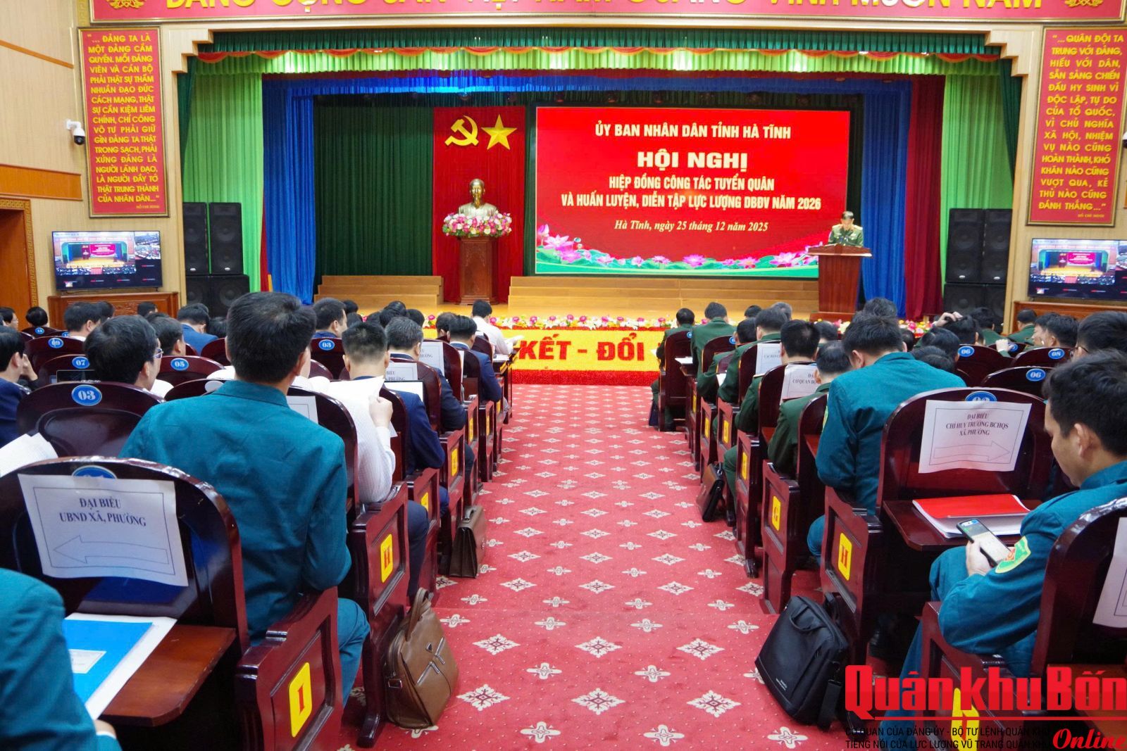 Sáng 25/12/2025, Ủy ban Nhân dân tỉnh Hà Tĩnh tổ chức hội nghị hiệp đồng công tác tuyển quân và huấn luyện, diễn tập lực lượng dự bị động viên (DBĐV) năm 2026. Đồng chí Hồ Huy Thành, Phó Chủ tịch UBND tỉnh và Đại tá Nguyễn Tú Tài, Phó Chỉ huy trưởng Bộ Chỉ huy quân sự (CHQS) tỉnh đồng chủ trì hội nghị.